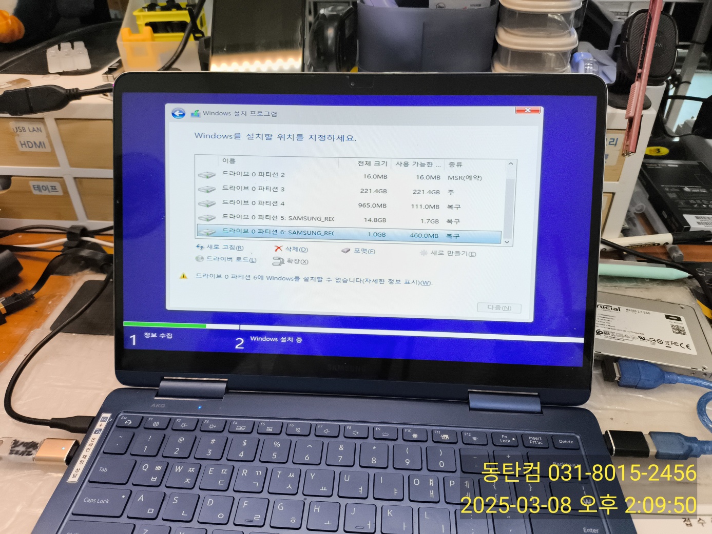 [에러 내용] 윈도우 설치 중 88% PC를 끄지 마세요. 이 작업은 시간이 걸립니다. PC가 여러번 다시 시작합니다.