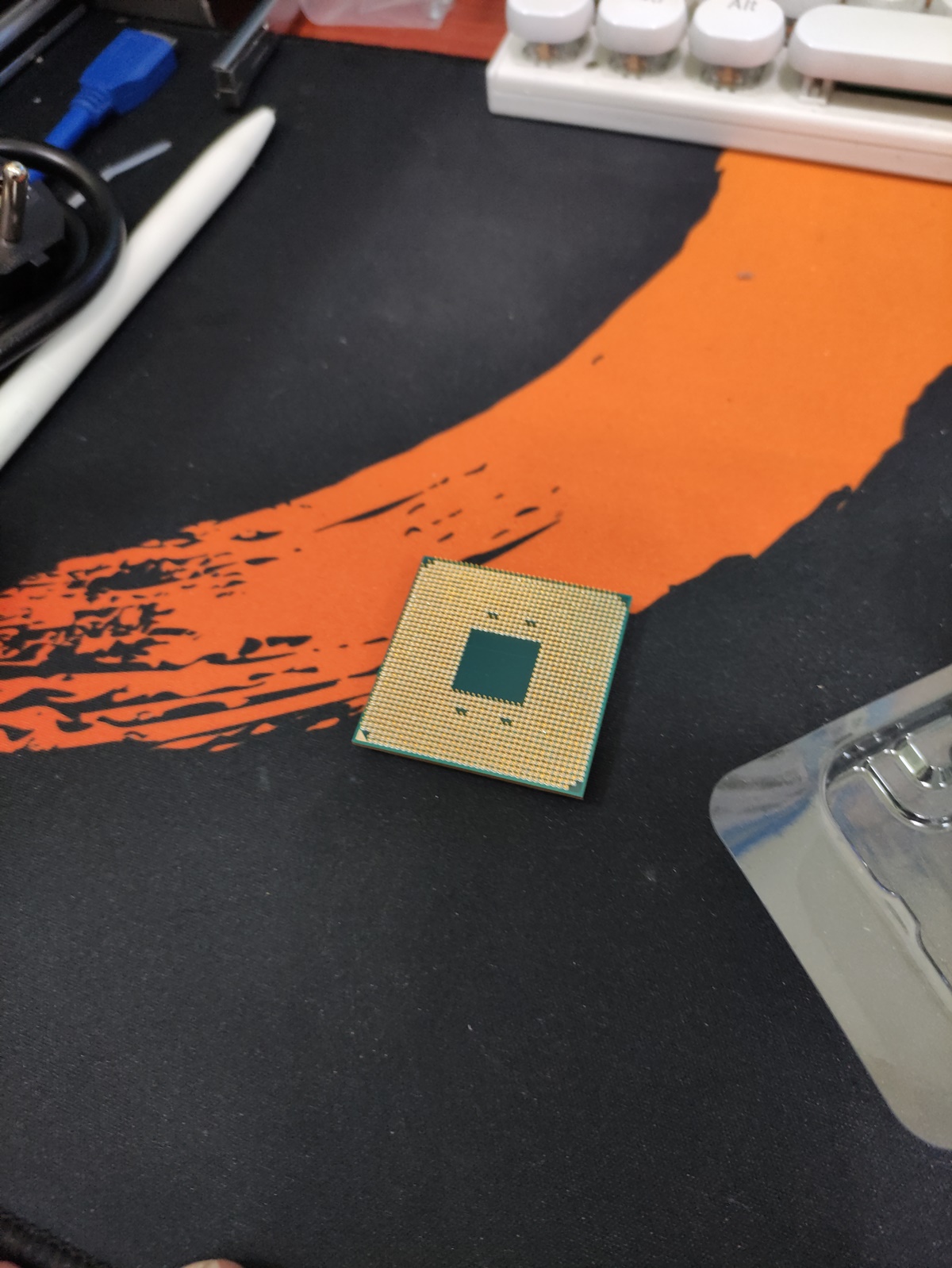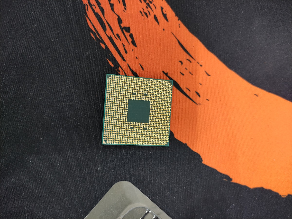 CPU 뒷면에 핀들의 상태를 확인하고 있습니다. 정상입니다. CPU는 AMD CPU갑에 넣어서 드렸습니다. 직접 AS 센터를 방문(접수)하실 계획을 가지고 계셔서 비용은 부품 점검비를 청구했습니다.