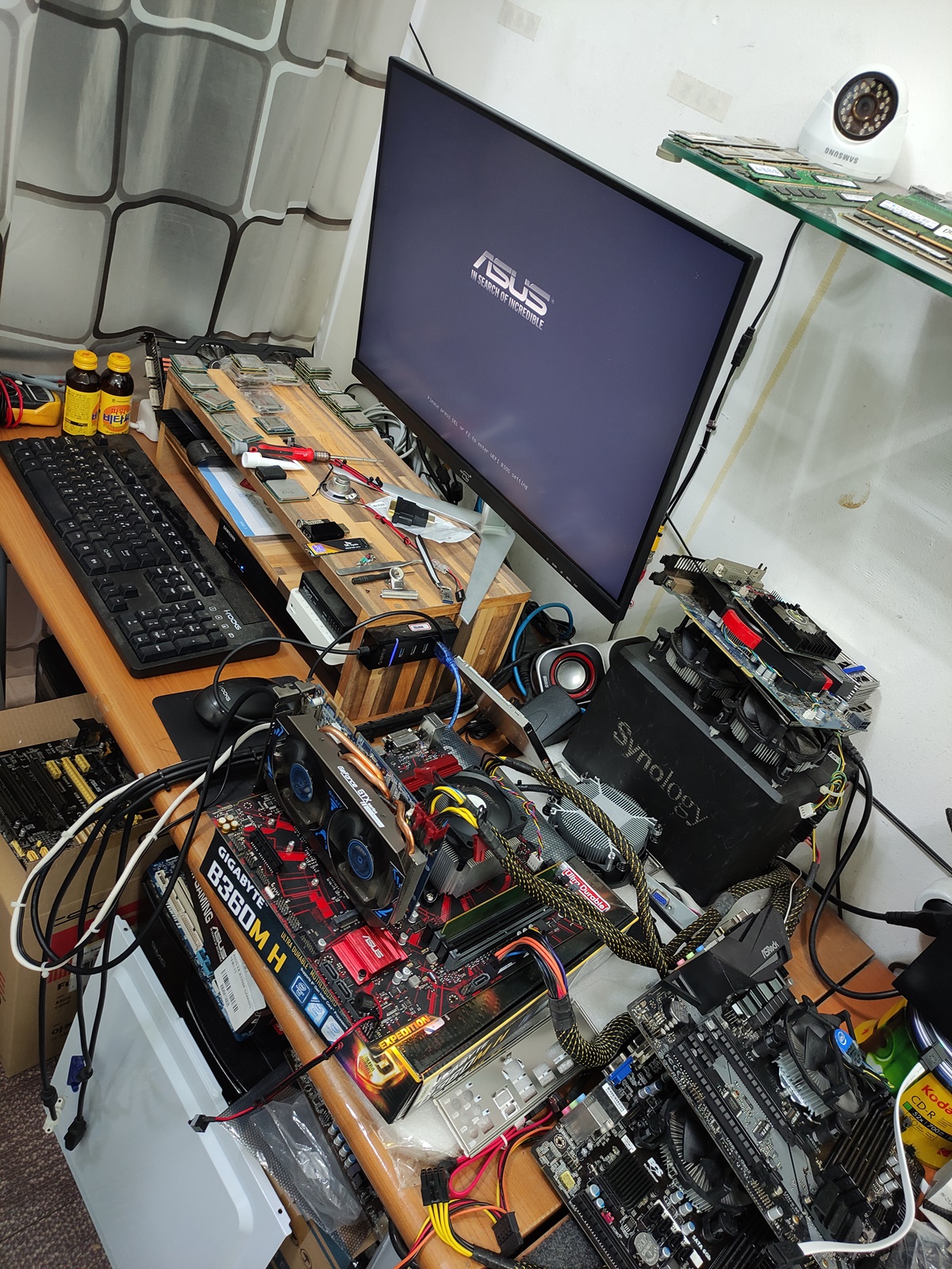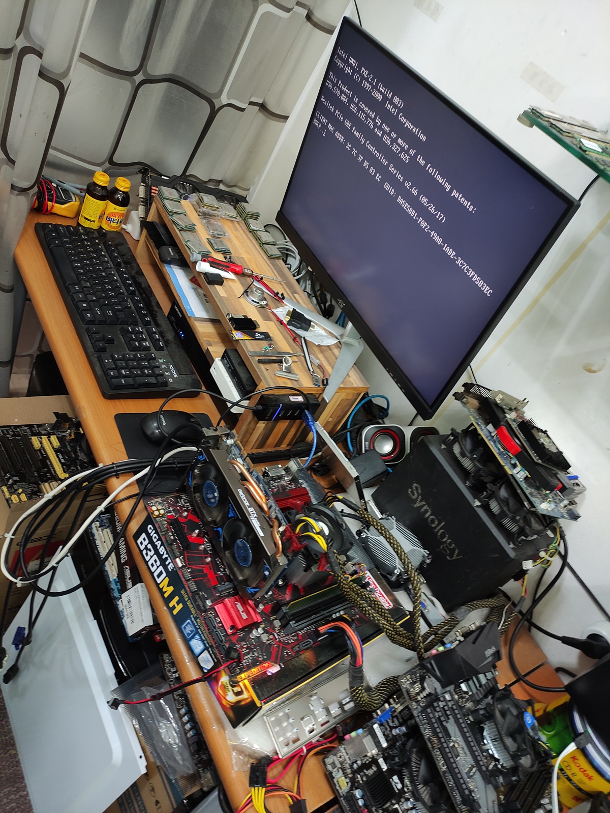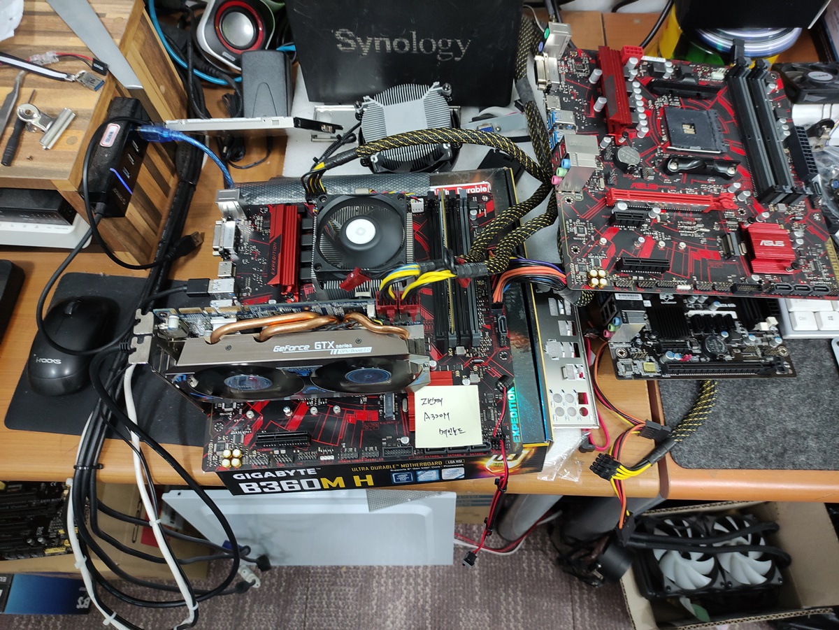 고객님의 부품을 하나씩 제거하고 있습니다. 그래픽카드, M.2 SSD 등 제거한 상태에서도 증상이 나타나는지 확인하고 있습니다.