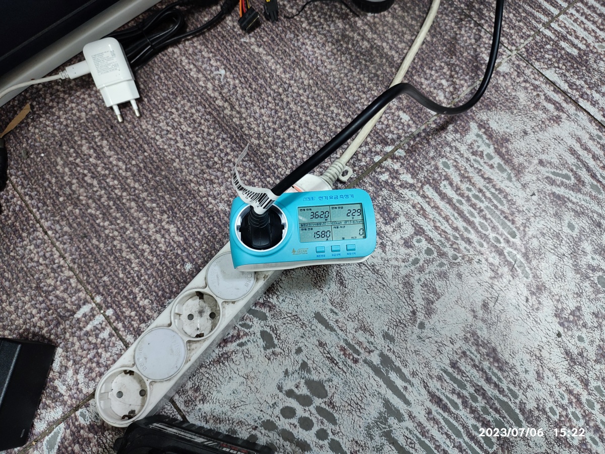 아래의 전력 측정기는 전기요금 측정기(계산기)라고 불리는 제품을 구입해서, 컴퓨터 사용량(벤치마크)에 따른 전력량을 측정해 봤습니다. 요즘은 스마트폰에 앱 설치해서 측정하는 플러그형도 있더라고요. 저도 하나 구입해서 가지고는 있는데, 설치할 앱이 중국앱이라서, 안 쓰는 (초기화된) 스마트폰에서 측정해 볼 생각입니다.