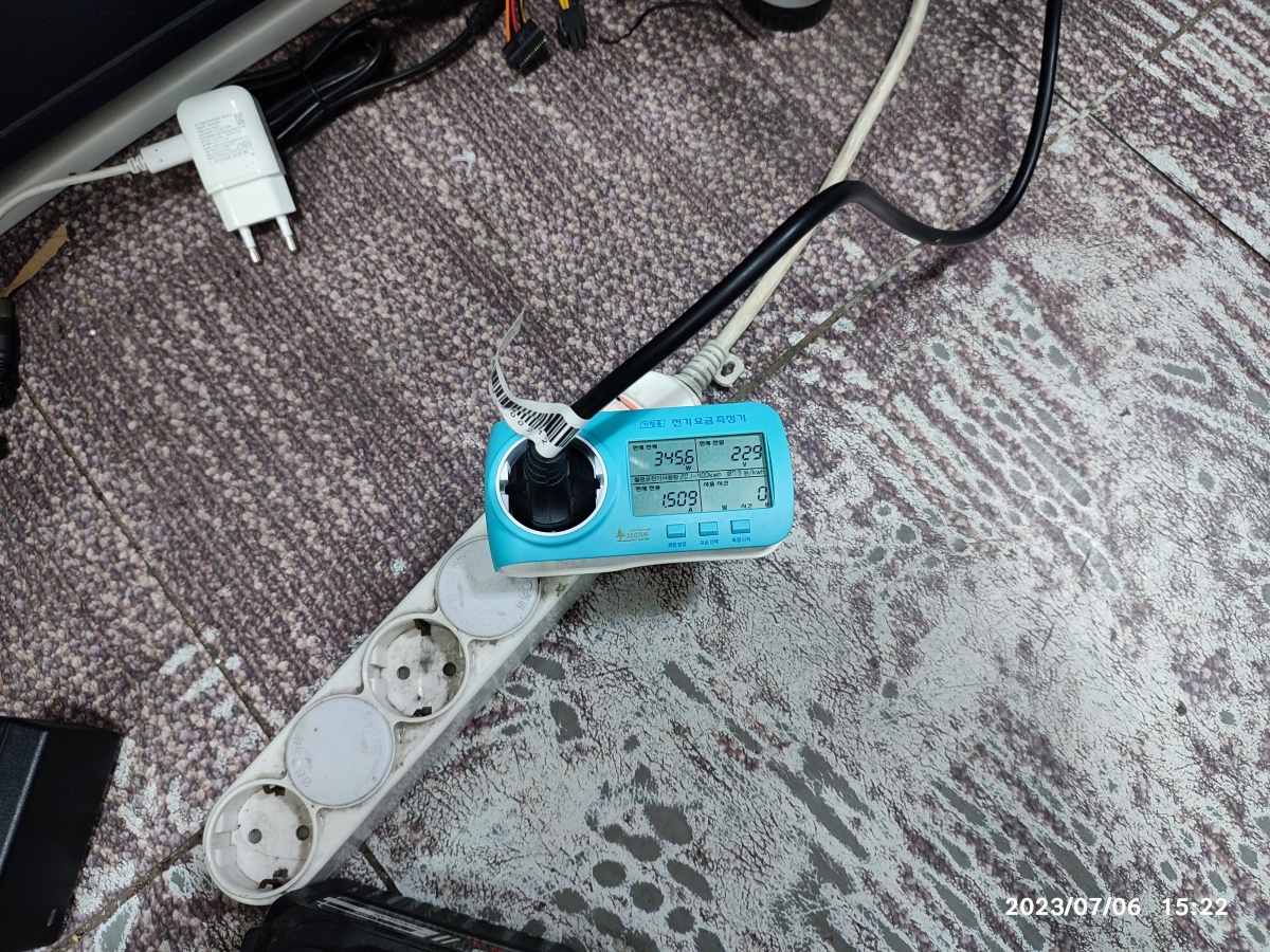 아래의 전력 측정기는 전기요금 측정기(계산기)라고 불리는 제품을 구입해서, 컴퓨터 사용량(벤치마크)에 따른 전력량을 측정해 봤습니다. 요즘은 스마트폰에 앱 설치해서 측정하는 플러그형도 있더라고요. 저도 하나 구입해서 가지고는 있는데, 설치할 앱이 중국앱이라서, 안 쓰는 (초기화된) 스마트폰에서 측정해 볼 생각입니다.