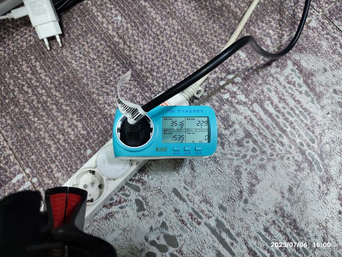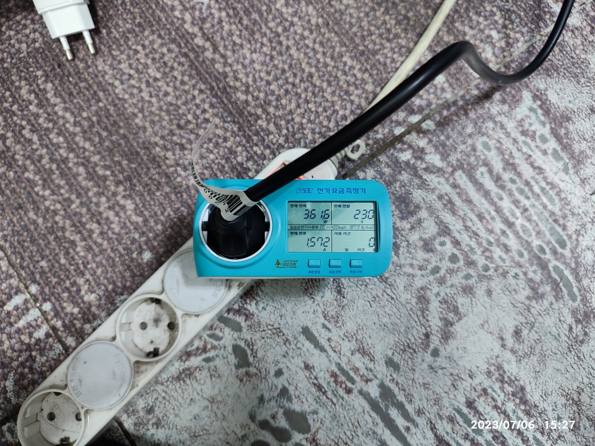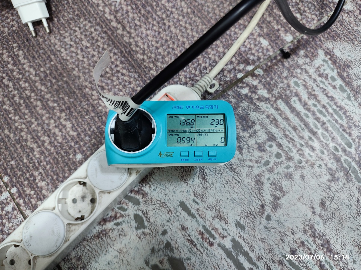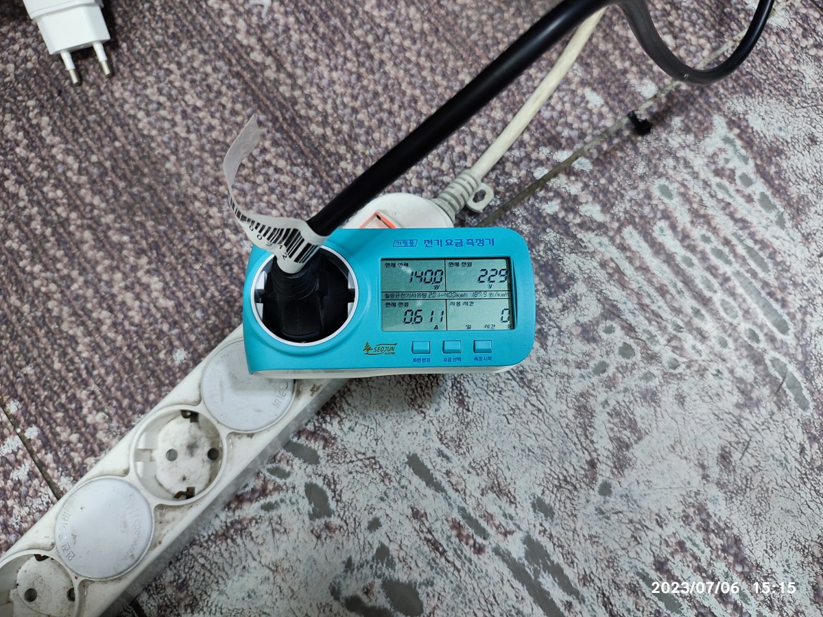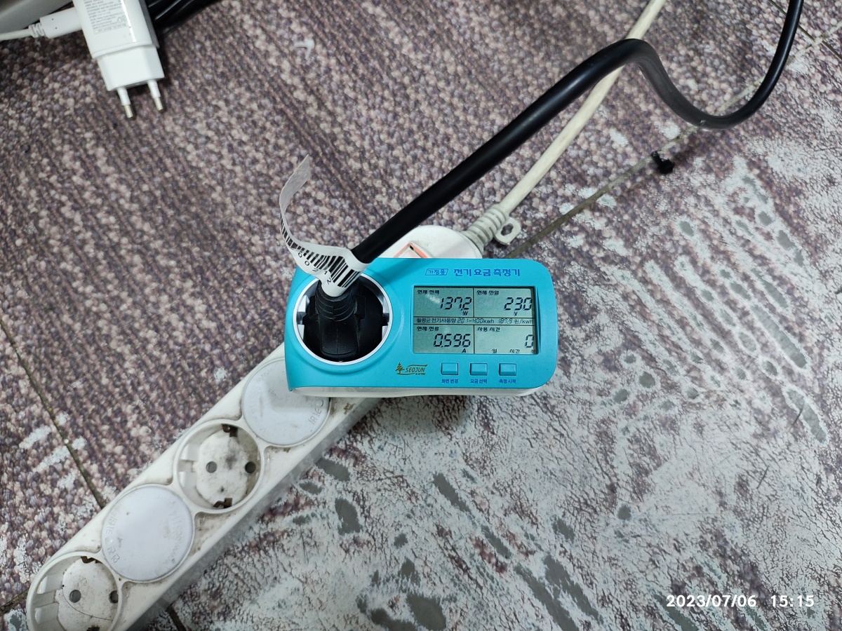 전기요금 측정기로 측정한 전기 사용량입니다.