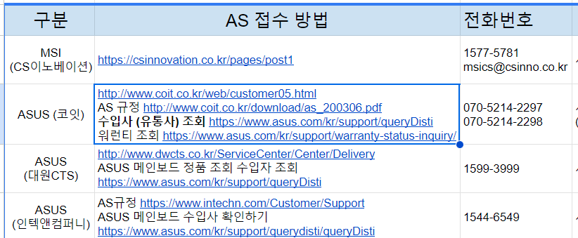 ASUS 메인보드 수입사(유통사) 조회 바로가기
