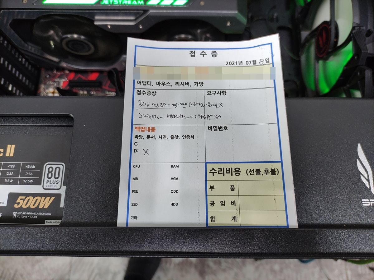 2. 그래픽카드와 메모리는 다른 PC에 꽂아서 정상 동작을 확인했습니다.