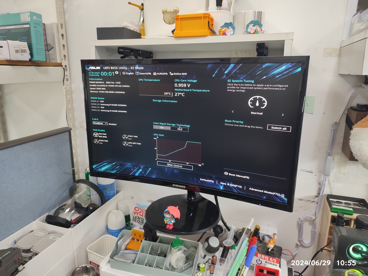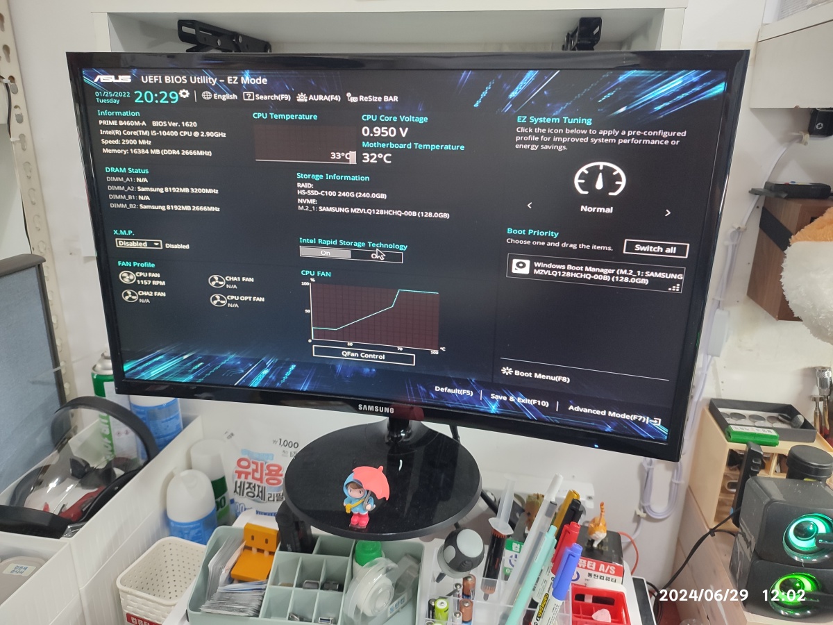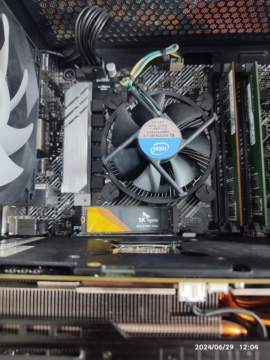 기존에 장착된 SSD가 저가형 제품이기도 하고 용량도 240기가 제품이라서, 메인보드에 직접 꽂을 수 있는 NVMe SSD로 업그레이드를 권장드렸습니다. SK하이닉스 P31 500GB SSD를 추가 장착했습니다. NVMe SSD가 첫번째 M.2 슬롯에서 인식이 안 되는 메인보드도 있기 때문에 먼저 제 M.2 SSD NVMe 120기가를 꽂아서 NVMe SSD가 정상적으로 인식되는 걸 먼저 확인하고 새 제품을 뜯어서 장착했습니다.
