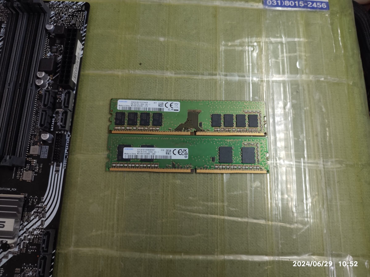 장착된 메모리는 하나는 원래 메인보드와 짝(2666)이고 하나는 새 제품(3200)으로 구입하신 메모리입니다. 되도록이면, 같은 연식과 속도의 메모리로 장착하는 게 좋습니다. 아래와 같이 연식과 모듈의 차이가 있으면 제대로 듀얼채널 구성이 잘 안 될 수도 있습니다. (저도 이렇게 메모리 종류를 섞어서는 잘 안 써봐서 듀얼 채널 구성이 될지 테스트는 안 해봤습니다.)