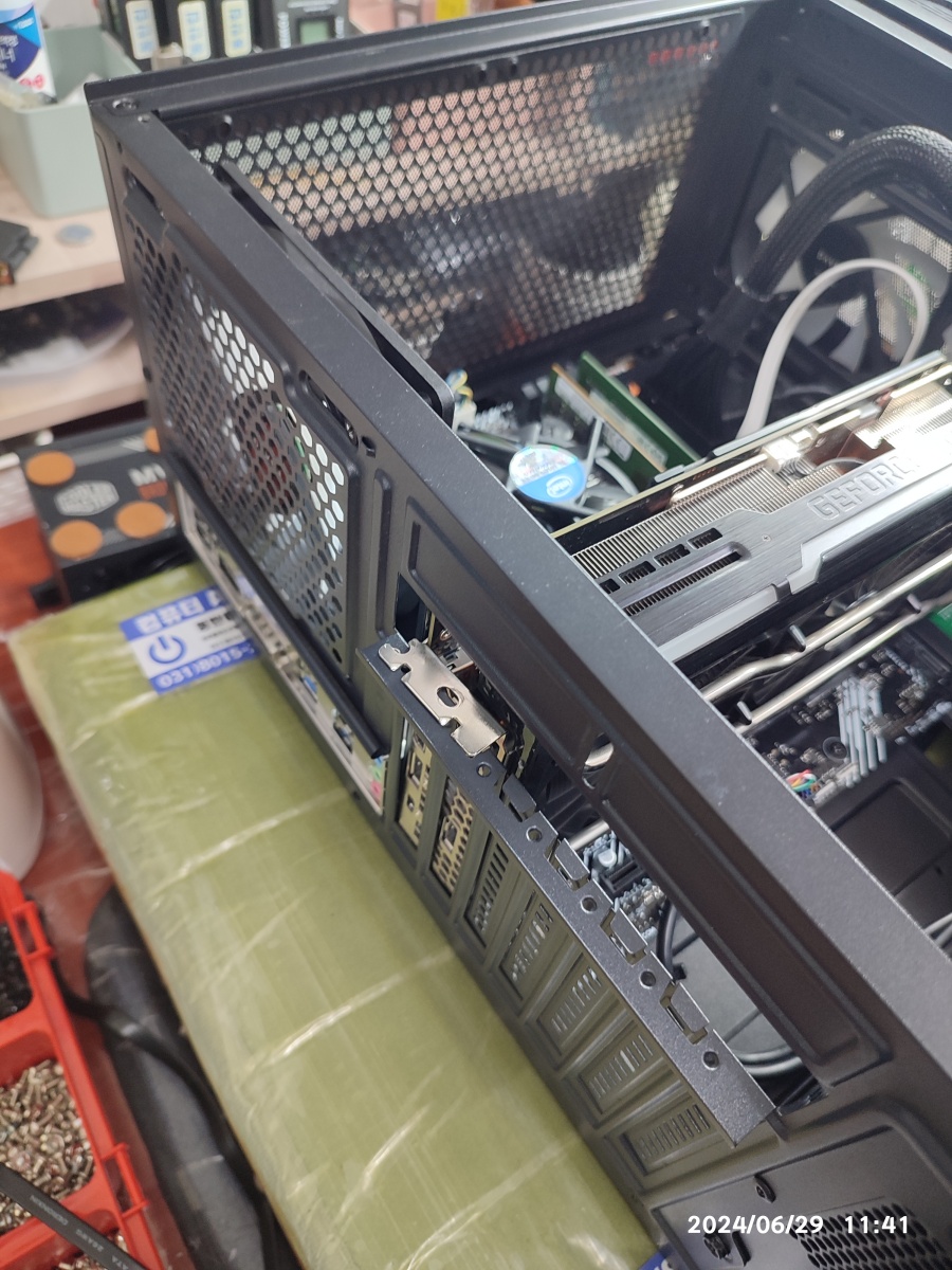 위와 같이 선정리를 진행하고 있을 때, 손님께서 그래픽카드 백패널을 댁에서 가져오셨습니다.