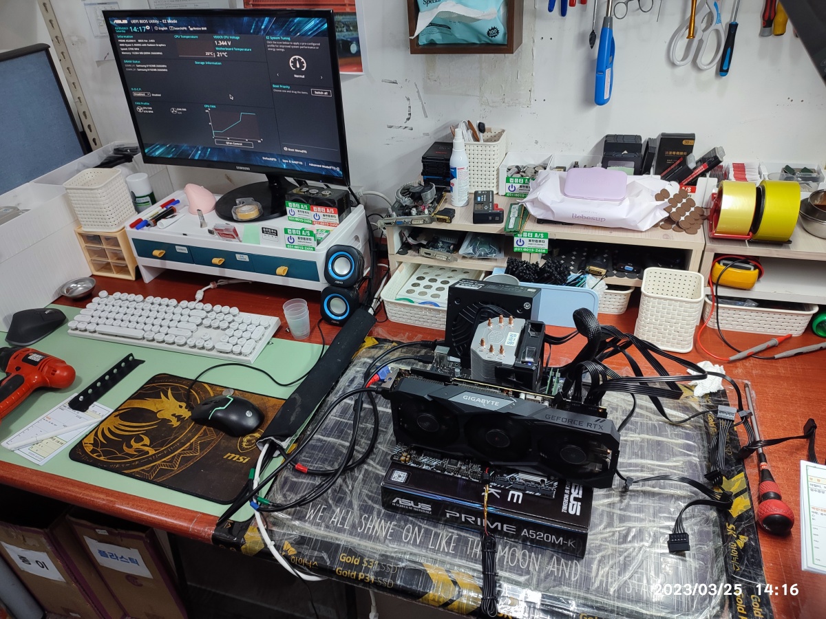 CPU와 메인보드가 정상적으로 동작되는 걸 확인한 다음, 순차적으로 그래픽카드와 메모리 등을 교차 테스트했습니다.