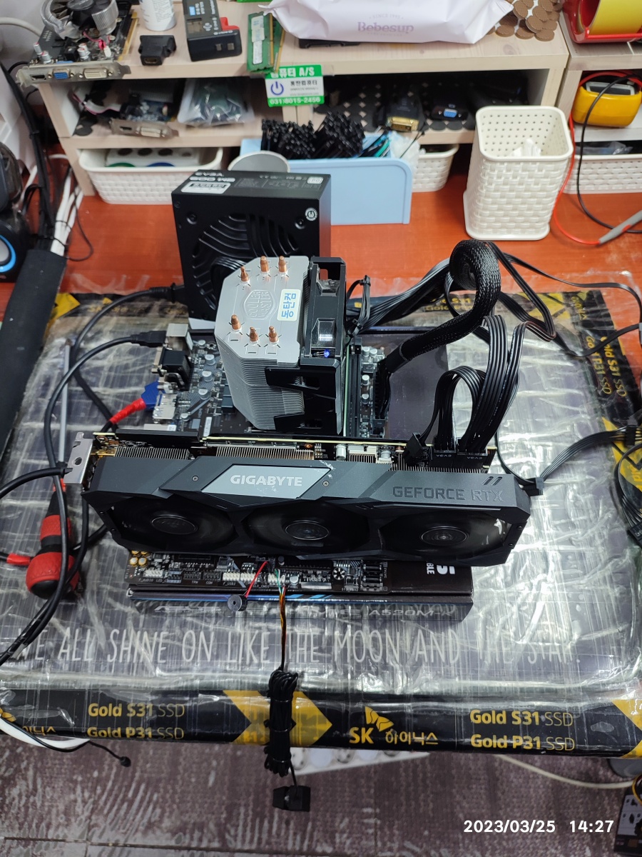 CPU와 메인보드가 정상적으로 동작되는 걸 확인한 다음, 순차적으로 그래픽카드와 메모리 등을 교차 테스트했습니다.