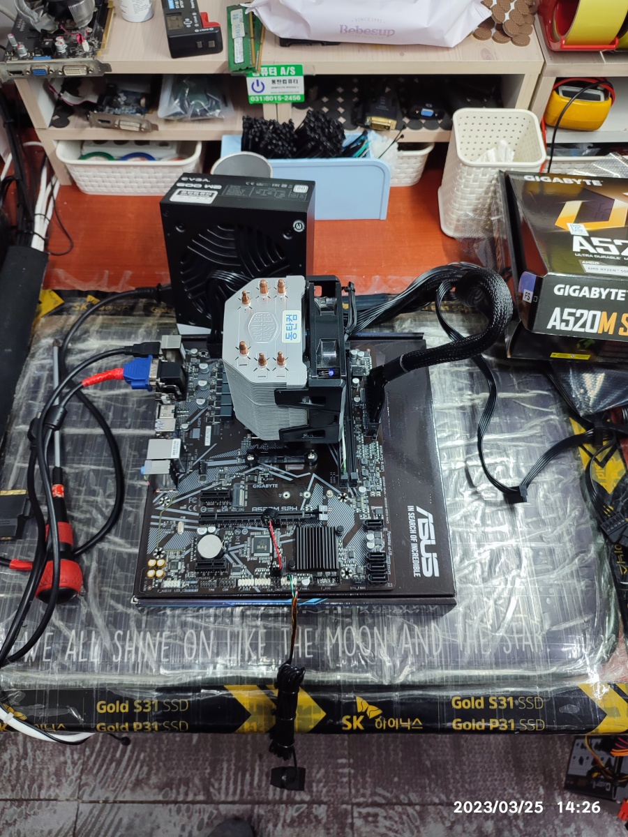 한 번에 잘 되면 얼마나 좋겠어요? 5600X CPU를 손님 메인보드에 장착해서, 누드 테스트 없이 케이스에 조립했더니, 처음 입고된 증상 = 화면 안 뜨고 강제 종료 안 되고 메인보드 LED가 깜빡이는 증상이 있습니다. 원래는 5600X를 손님 메인보드에 장착하고 케이스 밖에서 켜보고 케이스에 넣는 게 순서인데요. (중간에 컴퓨터 찾아가고 맡기는 손님 문의 전화, 맡긴 손님도 전화 통화도 하시고요.) 손님과 같이 점검하는데 거의 한 시간 소요됐습니다. 옆에서 기다리고 계시니깐 좀 빨리 해드려야 하니깐 중간 과정(케이스 밖에서 테스트)을 생략하고 조립을 했더니, 예상치 못한 변수가 생겼네요.