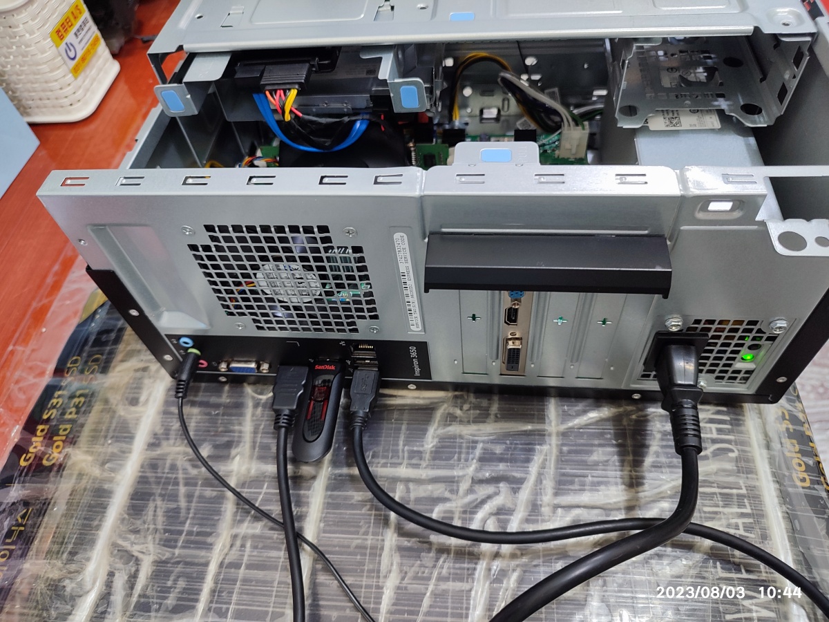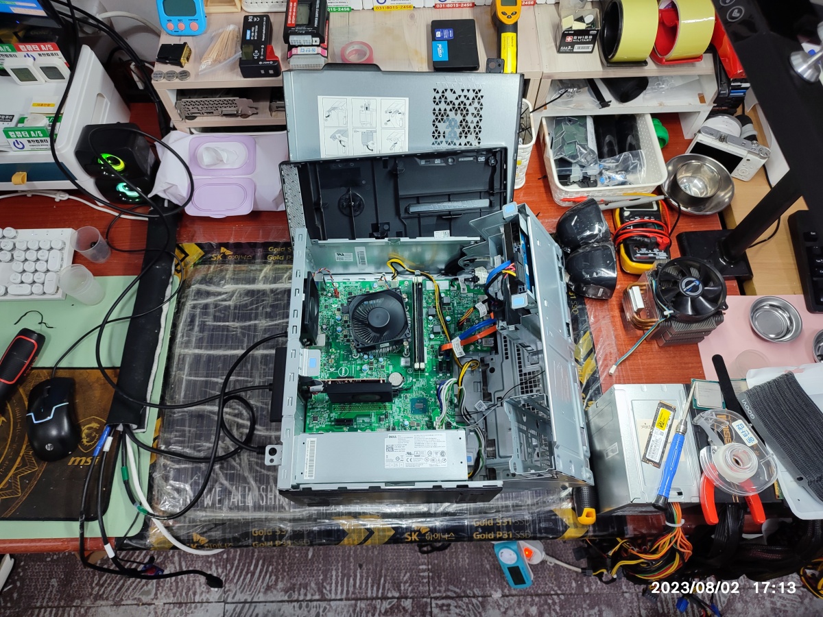 창고에 보관한 컴퓨터인데, 다시 사용하기 위해서 찾아주셨습니다. 원래 SSD가 없었는지? 아니면 부품용으로 누군가 재사용했는지는 저도 모르겠습니다만 SSD가 없고 하드디스크에 윈도우 설치가 안 된 상태로 오셨습니다. 하드디스크에 윈도우 설치가 안 된 상태라서 윈도우로 넘어가지 않는 고장 증상으로 오셨습니다. 컴퓨터 뜯어보니 아래와 같은 구조로 생겼습니다.