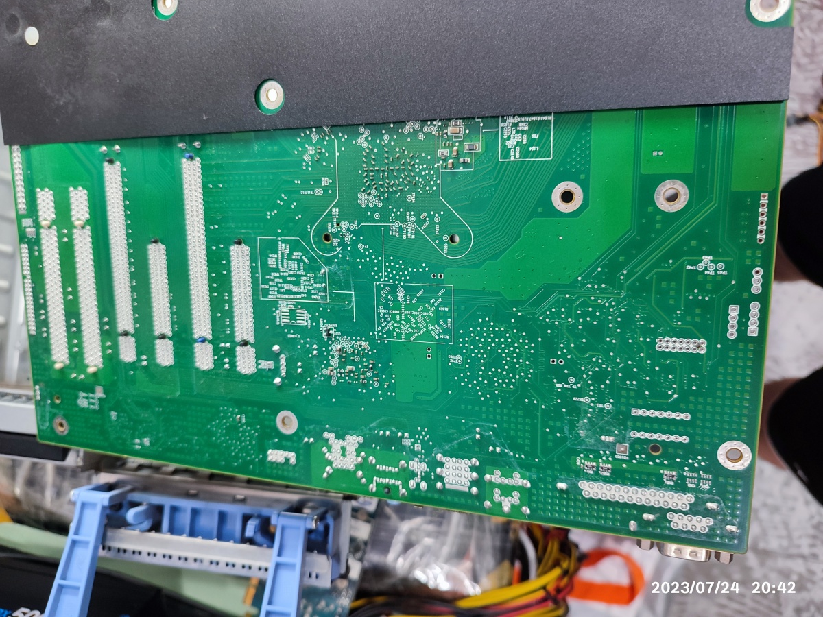 메인보드를 케이스에서 분리했습니다. 연결된 선들이 그렇게 많지는 않았습니다. 통합된 케이블로 연결된 상태입니다. 메인보드를 고정하는 나사가 많았어요.