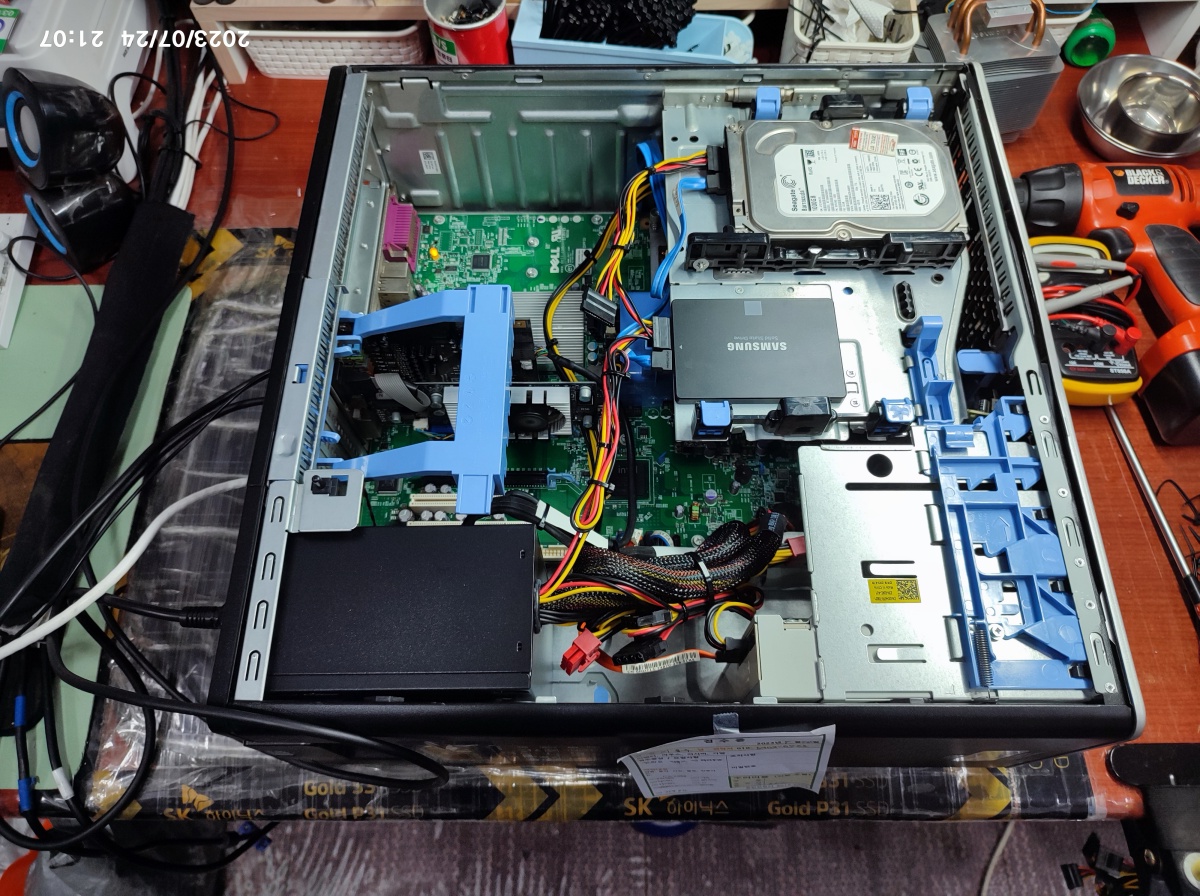 요즘 SSD 없이 하드디스크만 사용하기에는 너무 속도가 늦기 때문에 엄청 답답합니다. 그래서 삼성 SSD를 추가하고 사용하는 걸 권장드렸습니다. 다른 본체에 SSD 남는 게 있는지 찾아보고 연락주시기로 했는데, 남는 SSD가 없으셔서, 그냥 신품으로 추가했습니다.