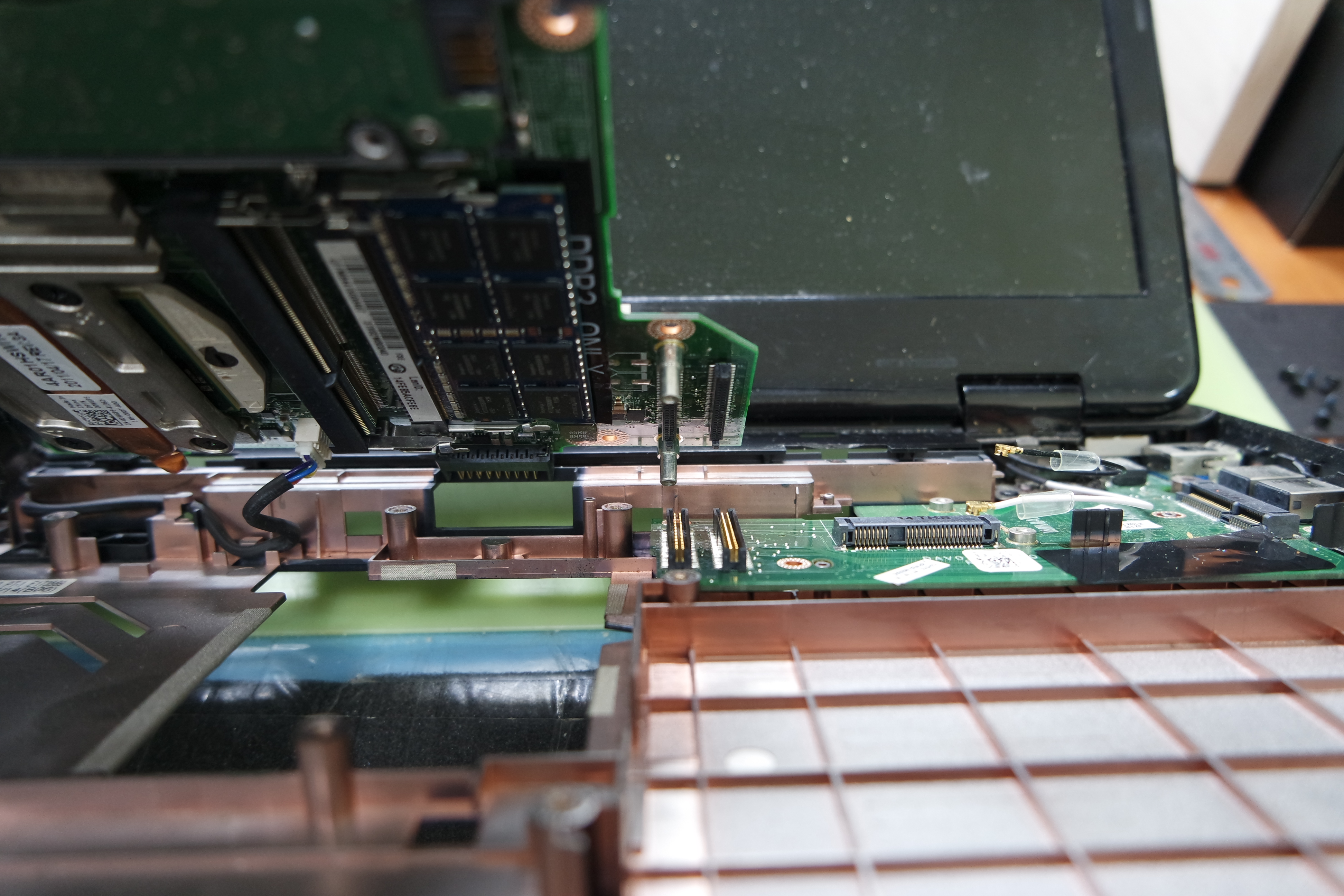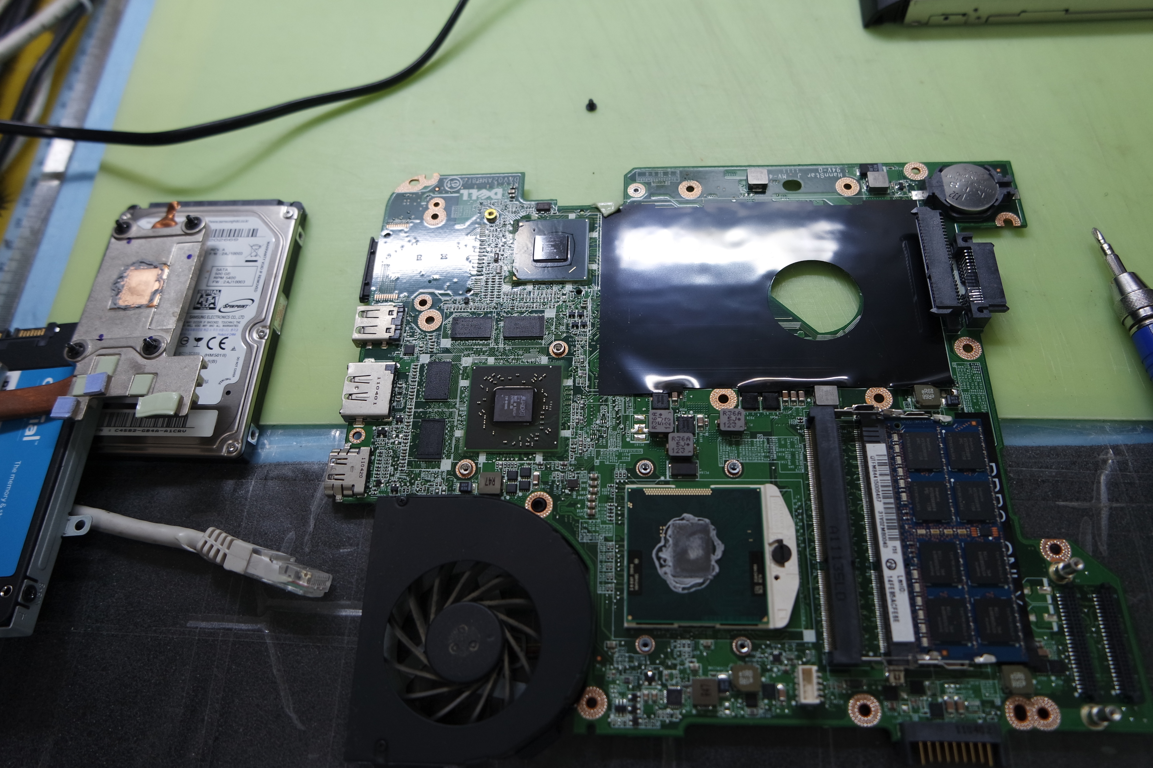 메인보드 밑에 하드디스크가 위치해있어서 참 난감한 노트북이 아닐 수 없습니다. LCD 케이블 분해하고 서브기판과 분리하는 등의 작업이 필요합니다. (우측하단의 스피커 케이블도 분해해야겠네요. 재조립시 기판 밑으로 잘 기어들어가니 신경써서 조립해야 합니다. 잘 까먹는 부분입니다.)
