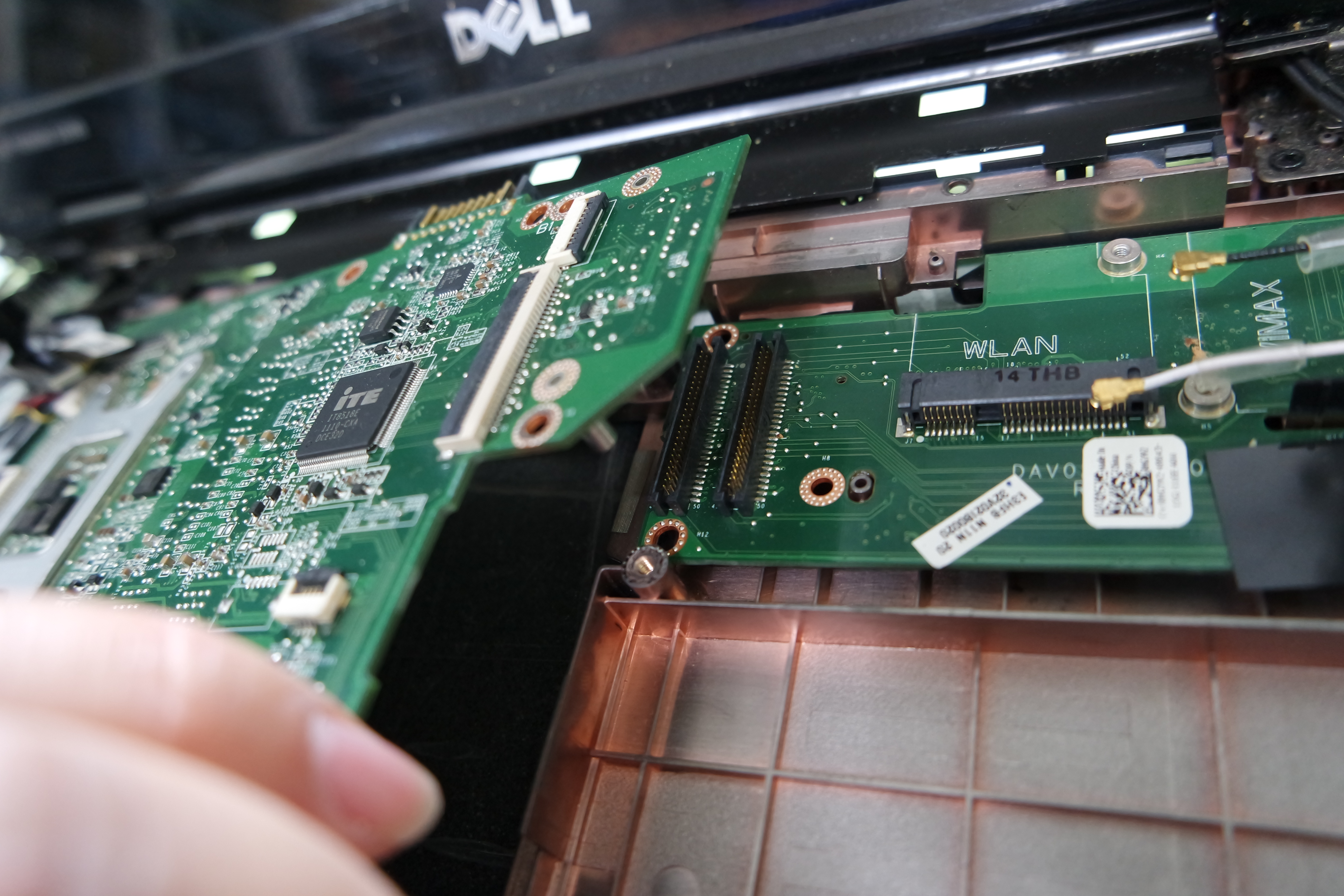 메인보드 밑에 하드디스크가 위치해있어서 참 난감한 노트북이 아닐 수 없습니다. LCD 케이블 분해하고 서브기판과 분리하는 등의 작업이 필요합니다. (우측하단의 스피커 케이블도 분해해야겠네요. 재조립시 기판 밑으로 잘 기어들어가니 신경써서 조립해야 합니다. 잘 까먹는 부분입니다.)
