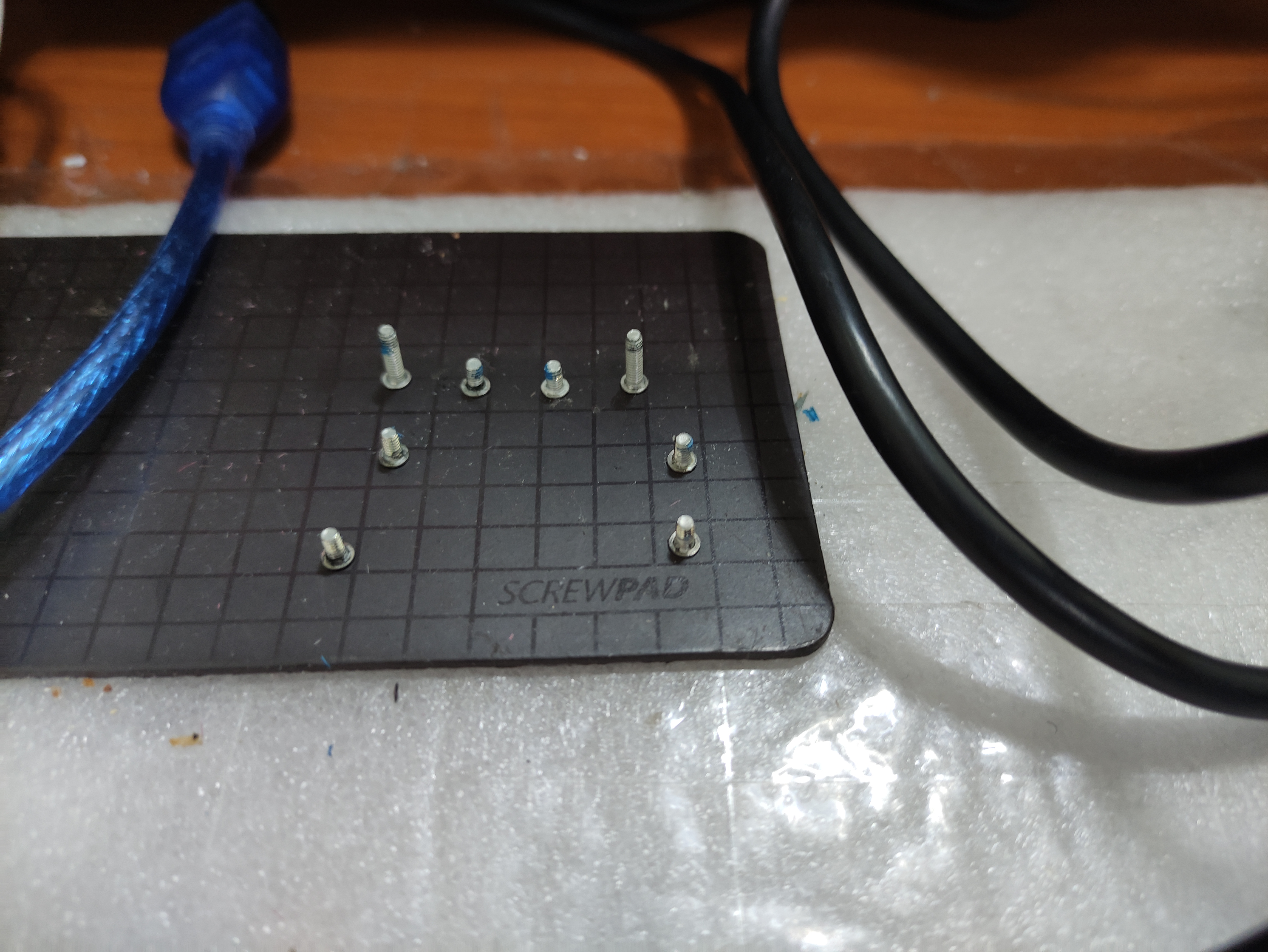 해당 노트북은 일반적인 십자드라이버로 나사를 풀 수는 없고요. 별 모양의 드라이버 팁이 있어서 뒤판을 뜯어볼 수 있습니다. 분해된 나사의 종류와 위치는 아래(오른쪽 사진)와 같습니다. 그렇게 많은 나사가 있는 건 아니지만, 종류가 2가지라서 위치가 헷갈리지 않도록 잘 보관해야 합니다.