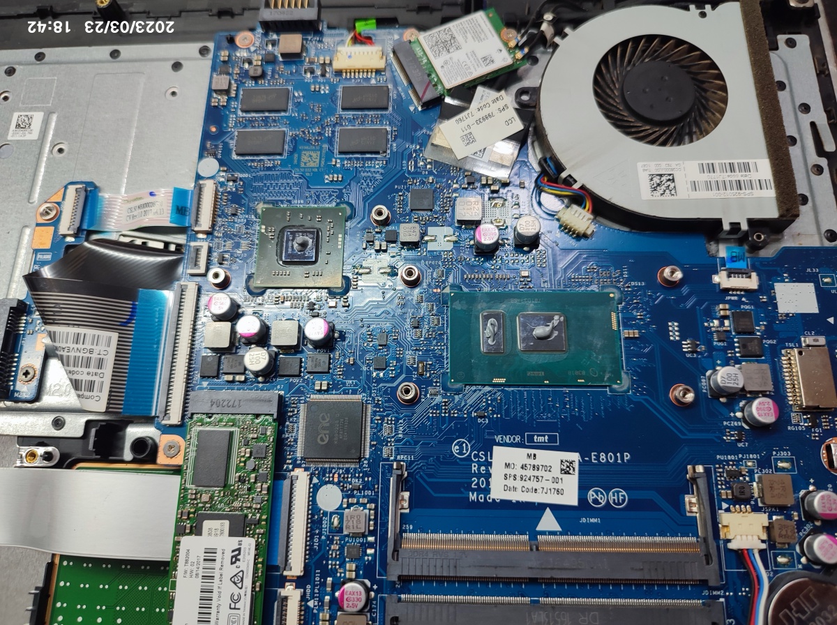 노트북 분해할 일이 그렇게 많지 않기때문에, 분해했을 때, 서멀컴파운드 재도포 작업도 진행합니다. CPU와 그래픽 칩셋 위의 서멀을 닦아내고 새로 발랐습니다.