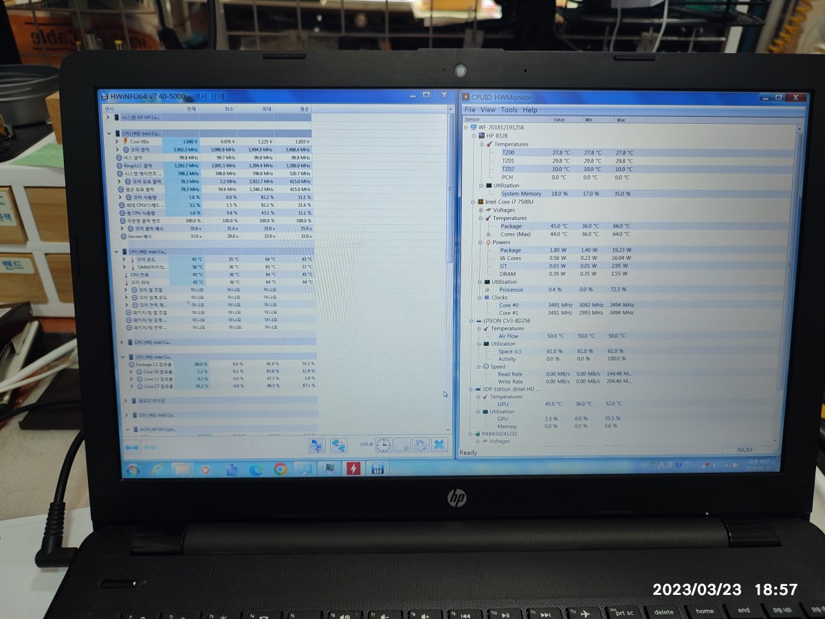 노트북 청소하고 서멀 다시 발라서, CPU 온도가 많이 떨어졌습니다. 청소하기 전에는 팬이 빠르게 자주 돌았는데, 이제는 무거운 작업을 진행하면 팬이 빠르게 돌아가네요.