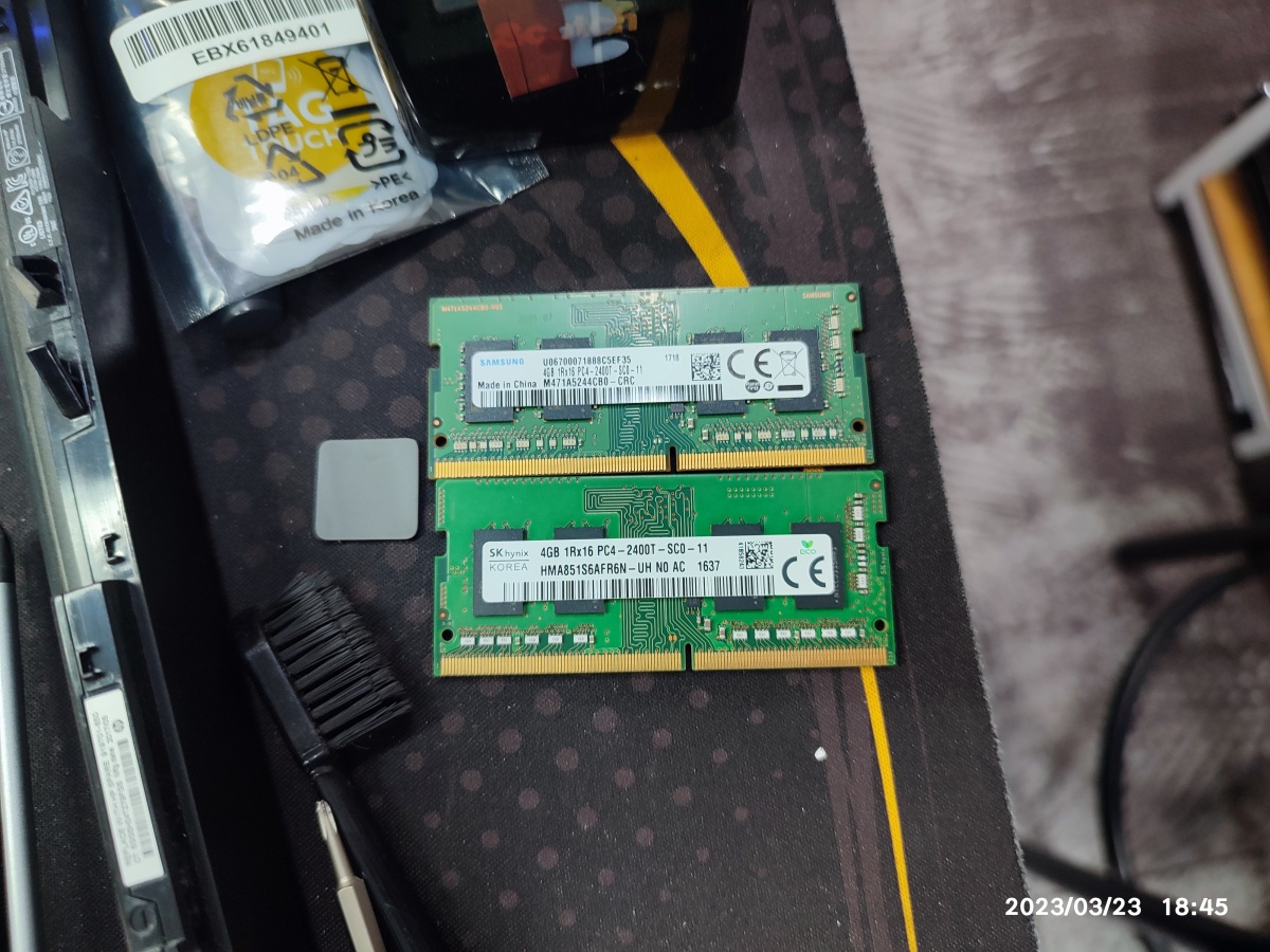 기존에 장착된 4기가 + 4기가 메모리 2개를 제거하고 삼성 DDR4 8GB 메모리 2개를 교체 장착했습니다.