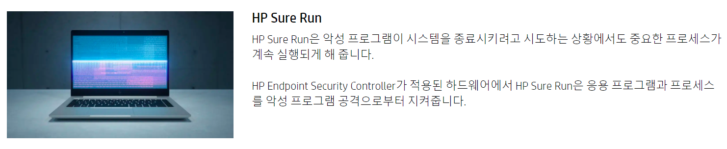 HP Sure Run - 중요한 프로세서를 보호하는 기능이 있네요.