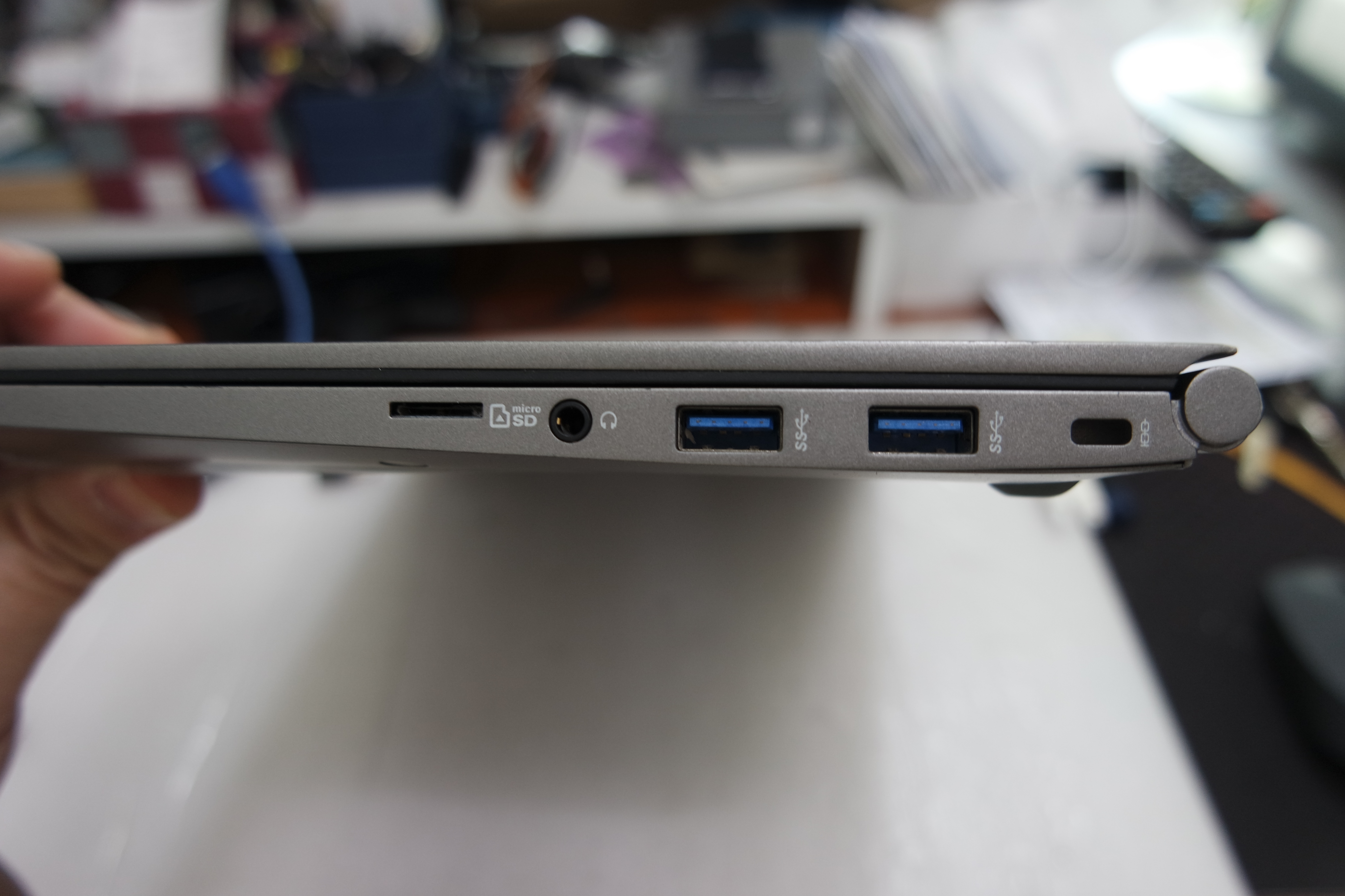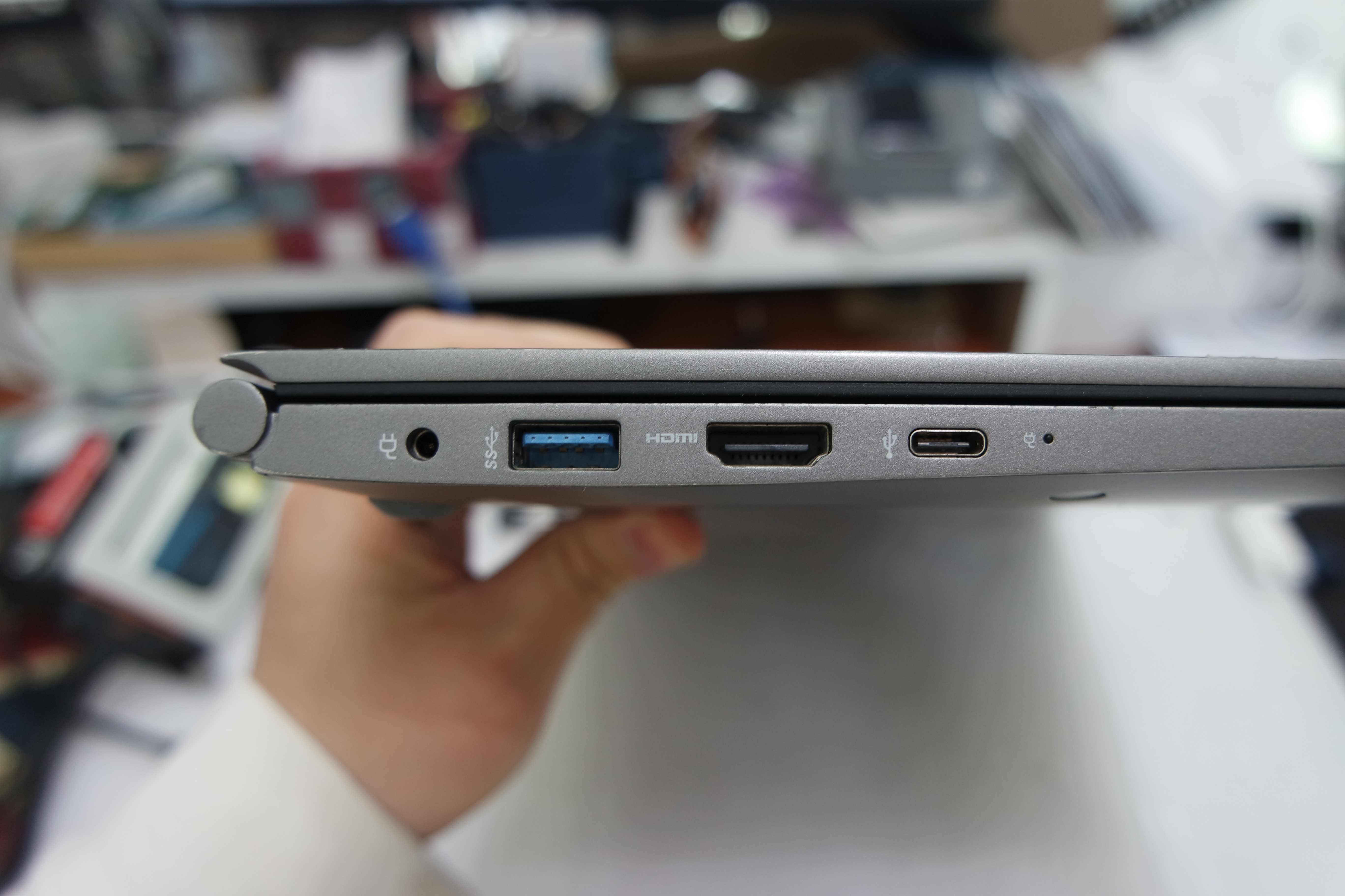 분해하기전에 노트북의 좌우측 포트의 사진도 남겨놨습니다. 좌측은 전원포트, USB 3.0 포트 1개, HDMI 출력포트, USB C타입 그리고 전원 LED가 보이고 오른쪽은 티플래시 메모리 리더기, 헤드셋단자, USB 3.0 포트 2개, 도난 방지 락킹홀이 보이네요.