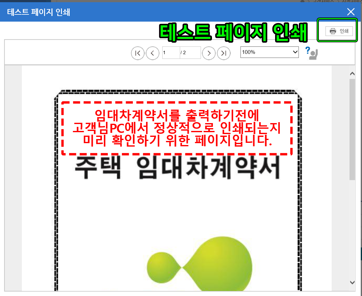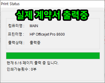 10. 계약서를 출력하기 전에 프린터 테스트 실행 중입니다.