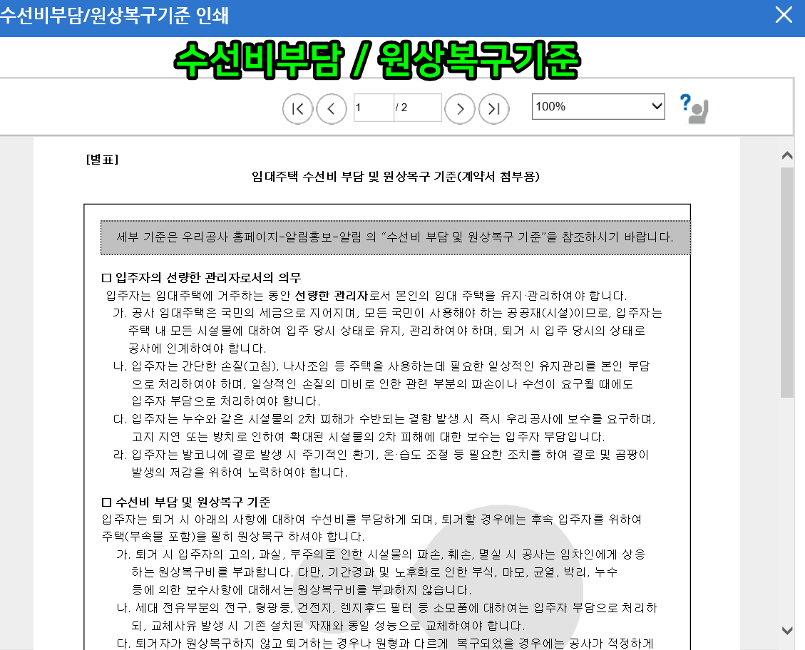 6. 수선비부담/원상복구 기준을 클릭해서 내용을 확인합니다.
