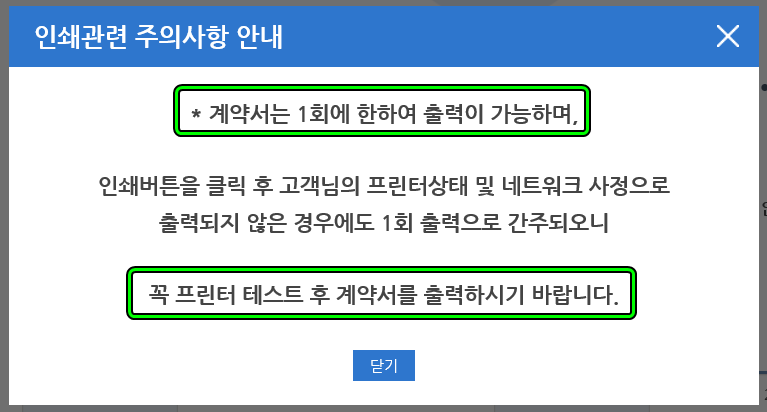 10. 계약서를 출력하기 전에 프린터 테스트 실행 중입니다.