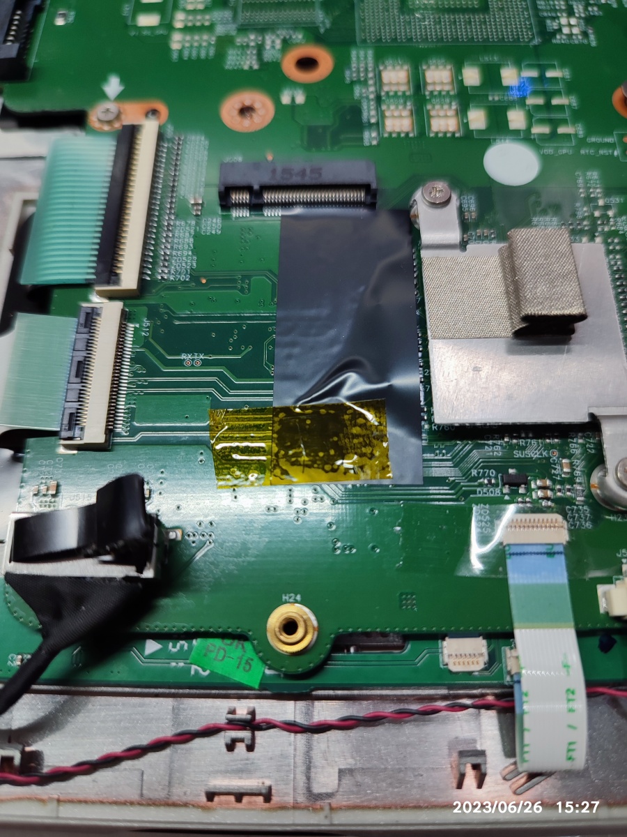 위와 같은 젠더는 언제 사용될지 모르기 때문에, 동네에서 구하기는 어려운 제품입니다. 그냥, 두께 있는 양면테이프로 기판에 붙이는 방법도 가능합니다. 나중에 뜯는 게 어려울 수 있으니 넓은 면적으로 붙이진 않을 거 같습니다. 노트북 하판 커버 위치에 딱딱한 스펀지(테이블 밑에 붙이는 소음 방지 가드 스티커 등)를 덧 붙이는 방법도 있겠네요.
