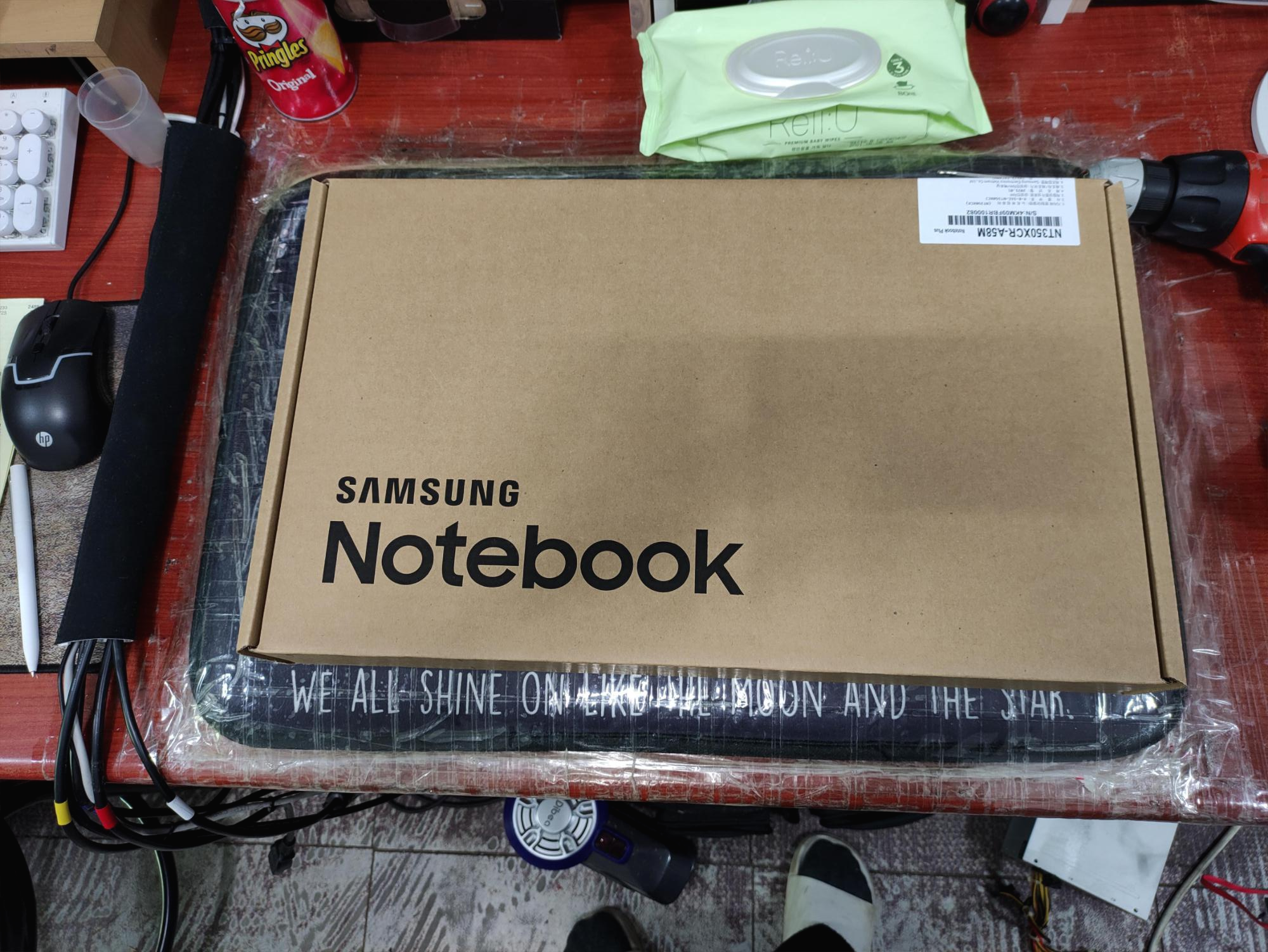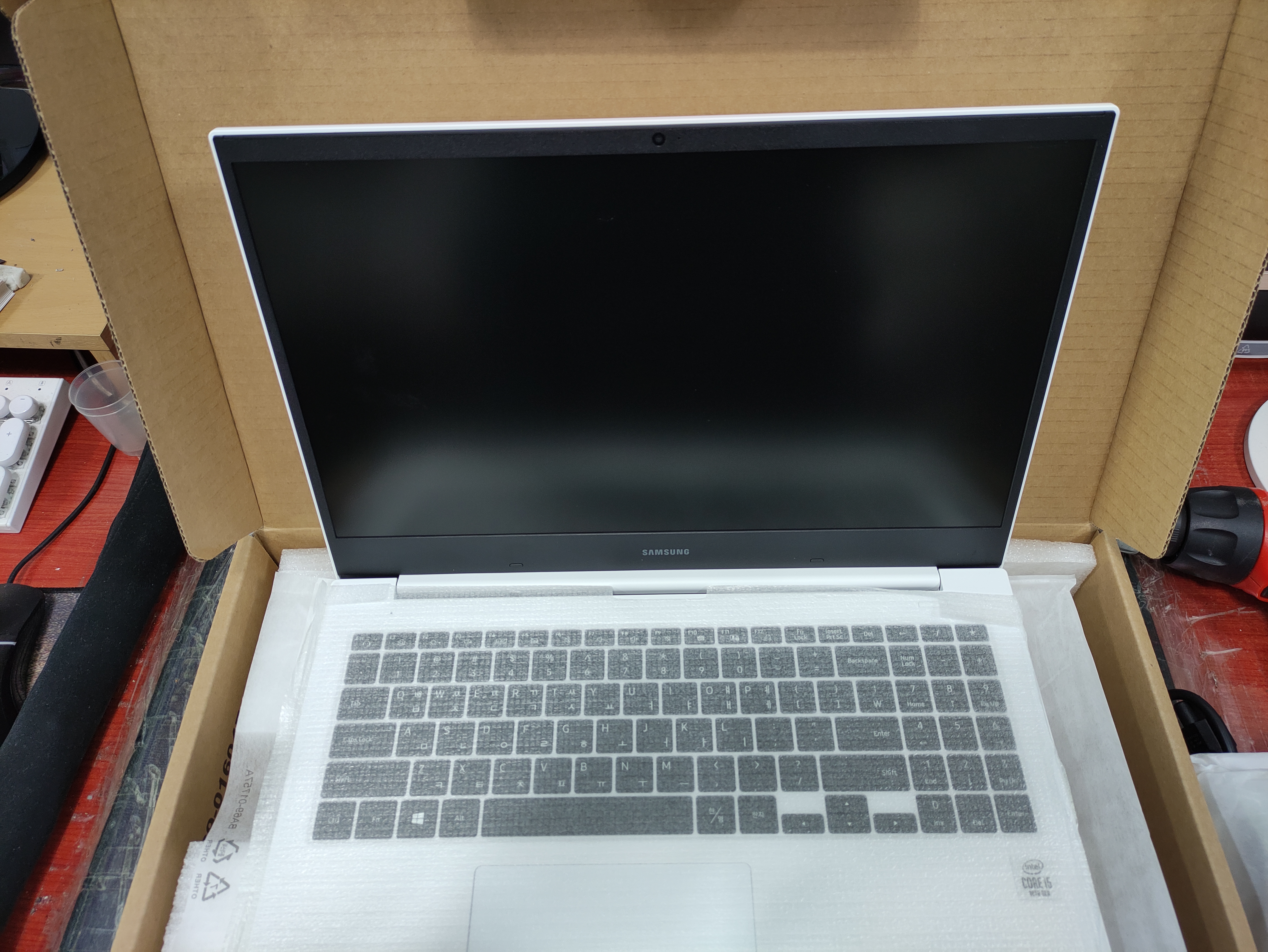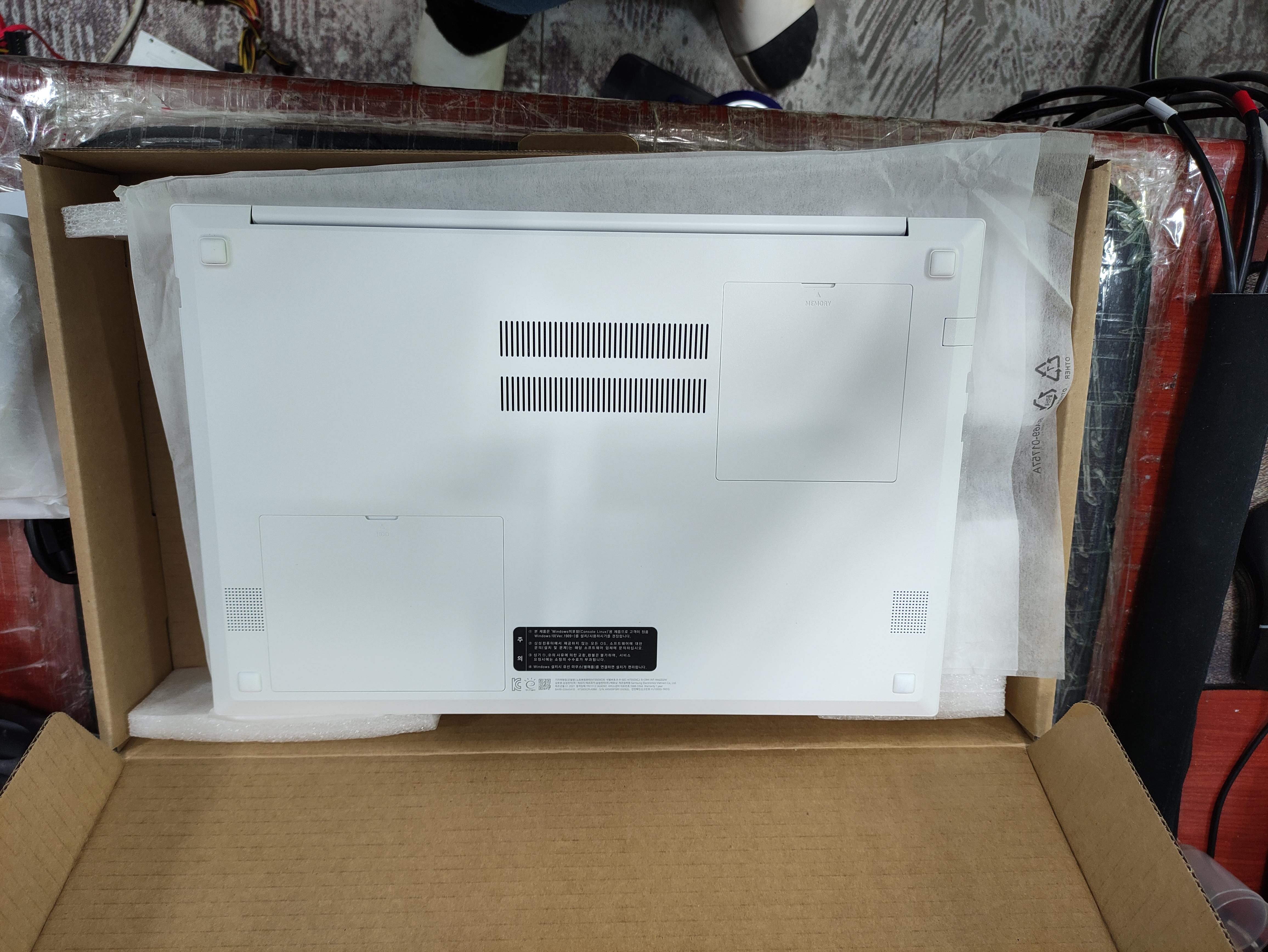 삼성노트북 NT350XCR-A58M 박스 개봉 및 외관 상태 확인하고 있습니다.