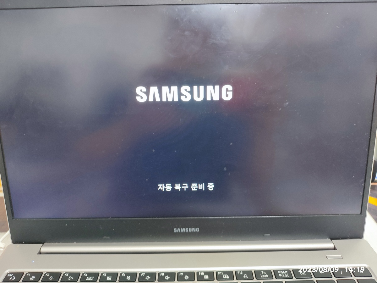 NT550XCR-GD5A 노트북이 입고됐습니다. 윈도우 자동 복구 준비 중으로 들어가네요.