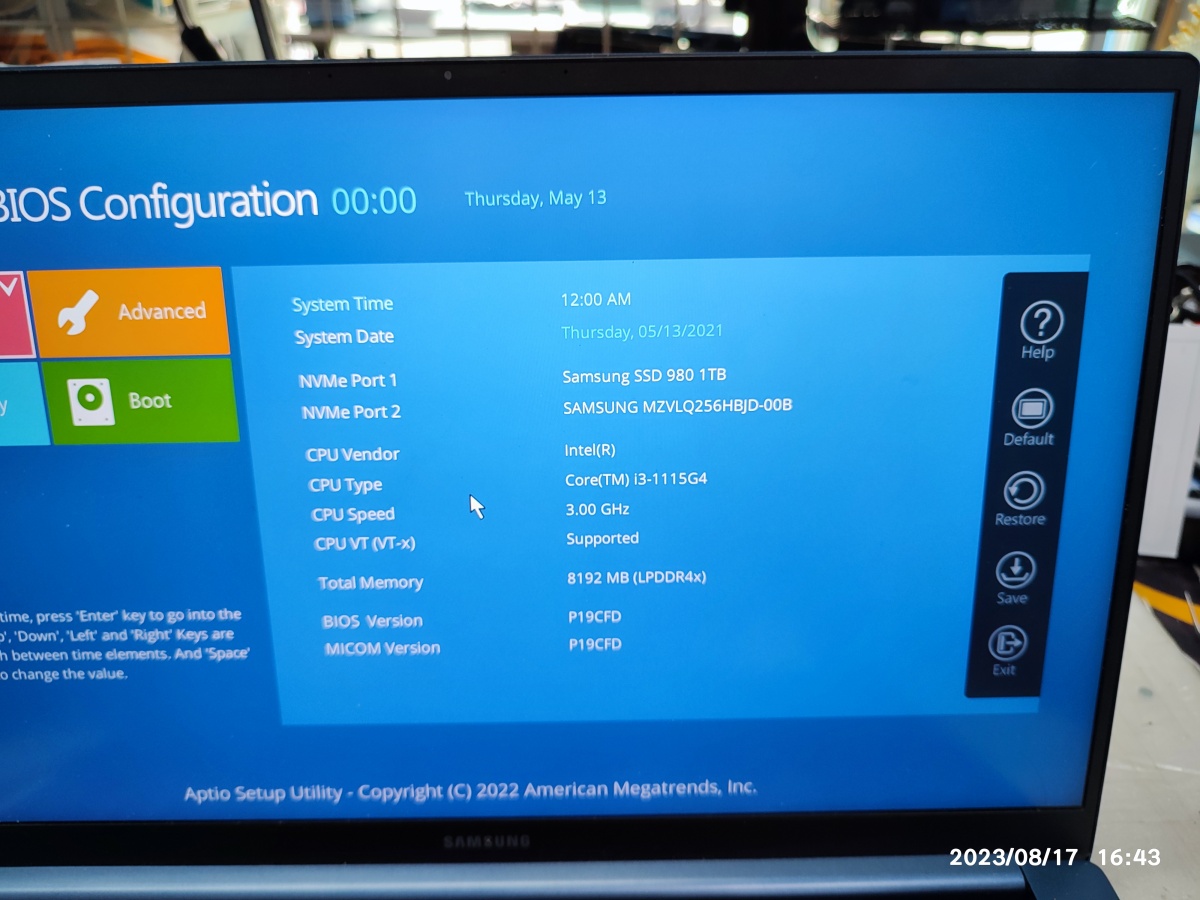 BIOS Version P19CFD로 나오네요. 기존에 장착된 C드라이브 SSD는 MZVLQ256HDJD-00B (PM991a) 입니다.