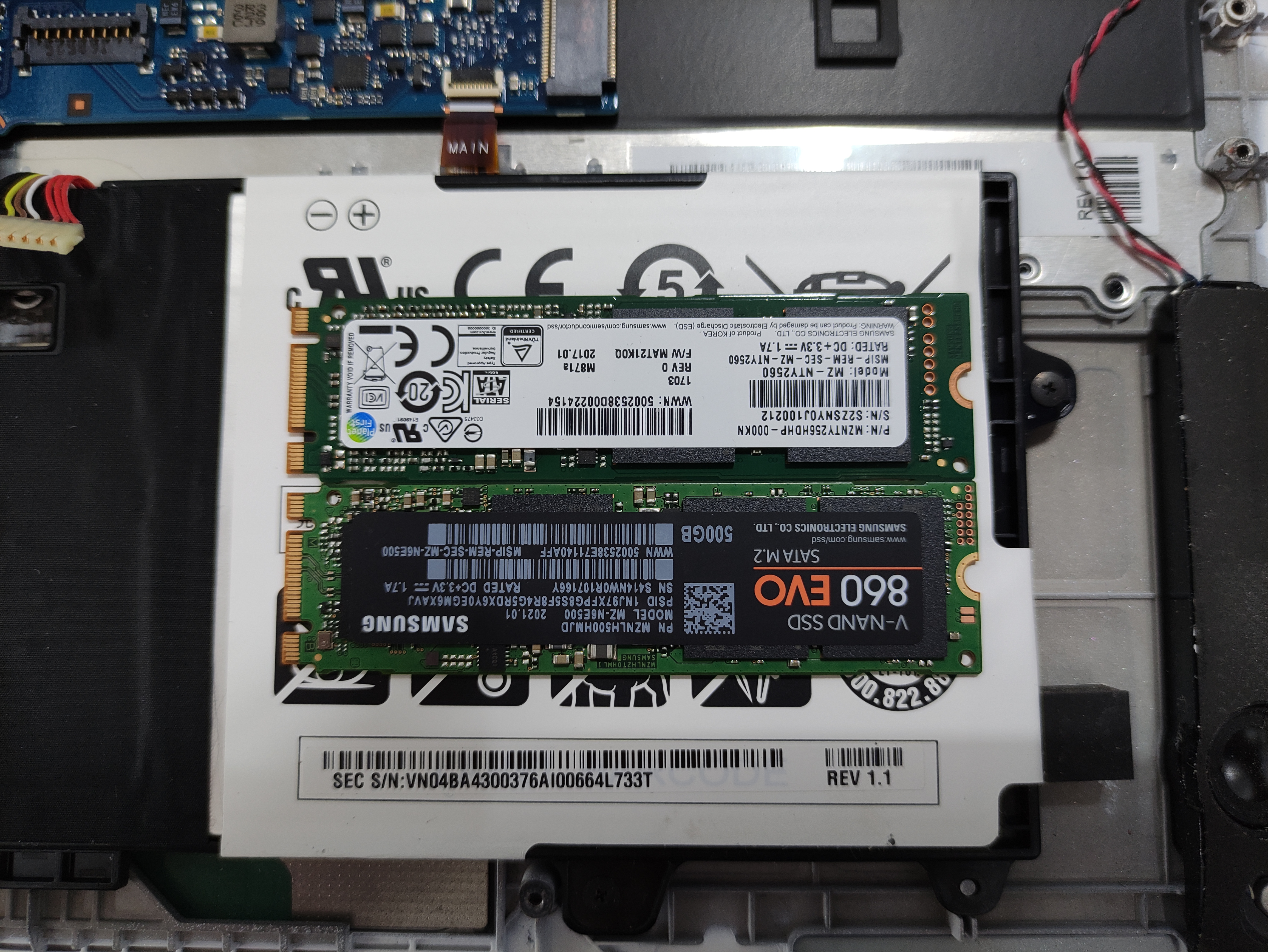 기존의 삼성 SSD를 제거합니다. MZNTY256HDHP-000KN (SATA III NGFF)