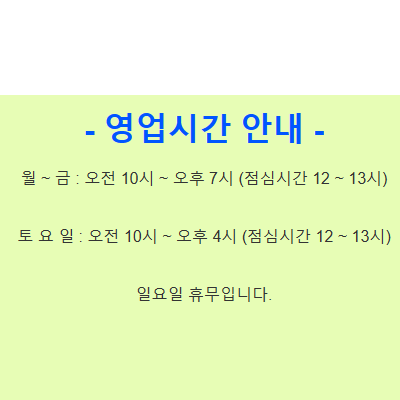월 ~ 금 : 오전 10시 ~ 오후 7시 (점심시간 12 ~ 13시)