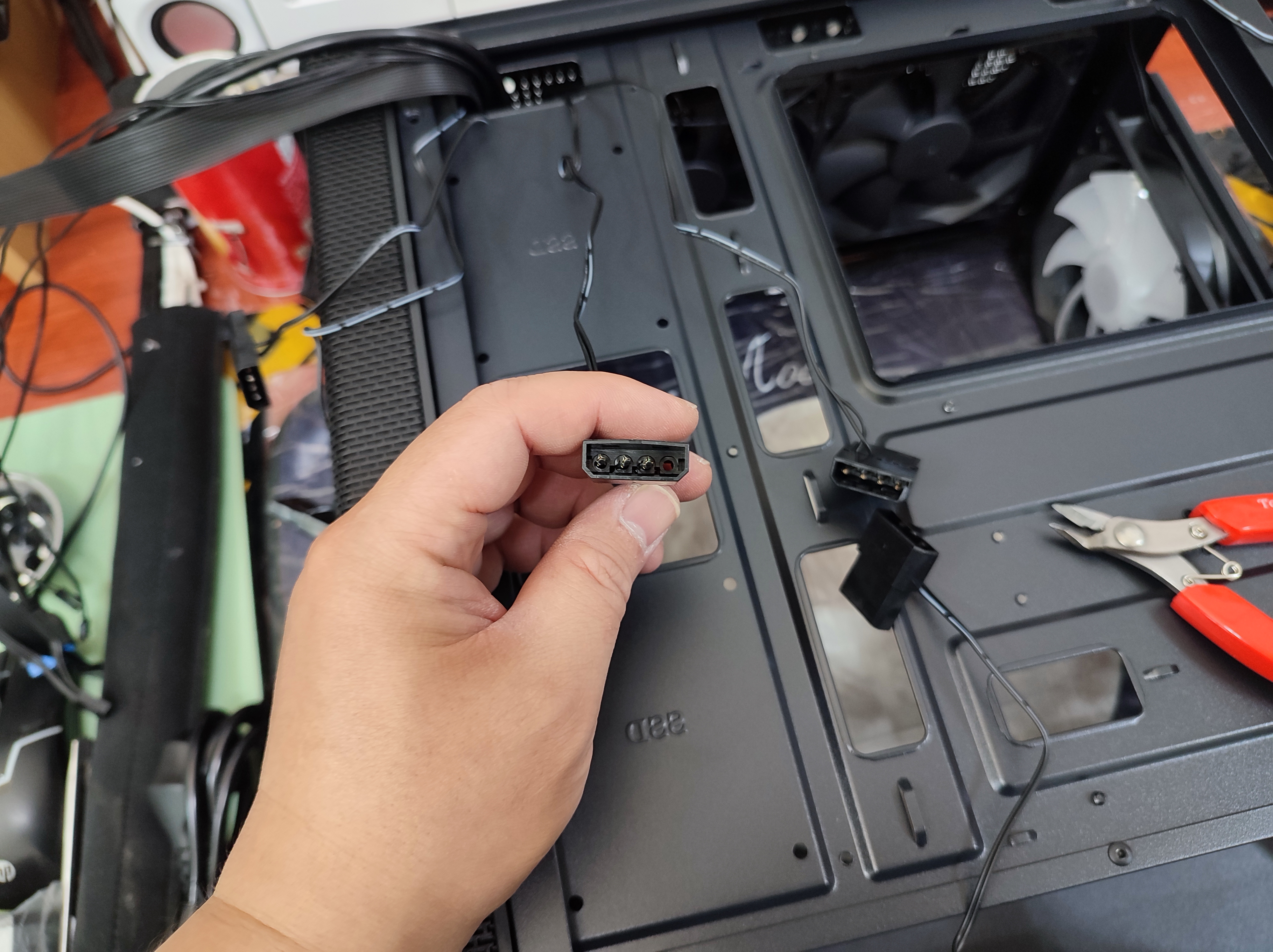 케이스의 LED 모양을 보여드리려고 후면팬을 연결하는데, 핀이 이렇게 쏙 빠지네요.