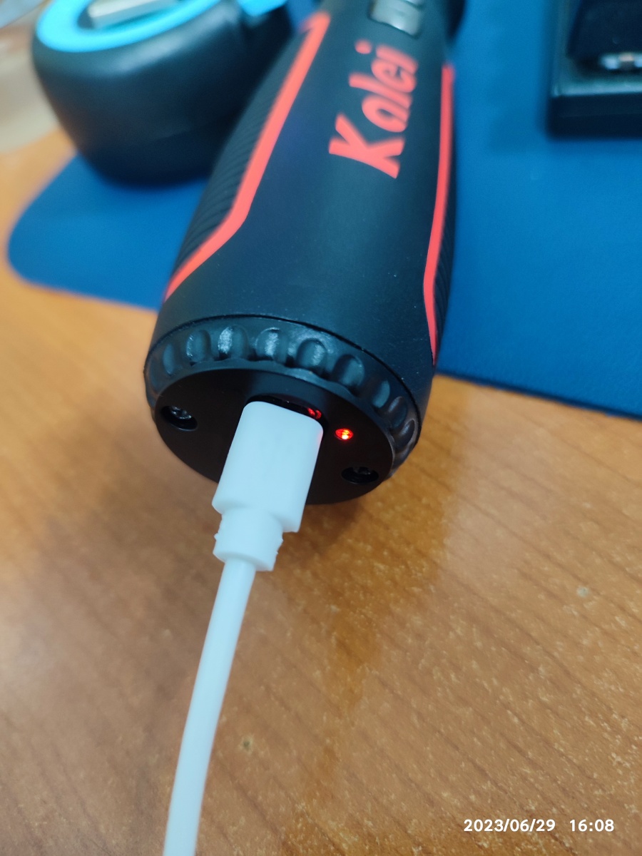 조금 더 세밀한 작업은 수동 (손) 드라이버로 작업(빨간색 드라이버)합니다. 파워서플라이처럼, 조금 세게 돌려도 상관없는 부속 조립할 때, 전동 사용하고 주로 푸는 용도로 사용합니다. 아래는 알리익스프레스에서 구입한 전동 드라이버입니다. 제품명은 USB Recahrgeable 3.6V Screw Driver이라고 적혀있네요. G2-7L Drills라고 판매되고는 있습니다. $24(3만원대)정도에 구입했습니다.