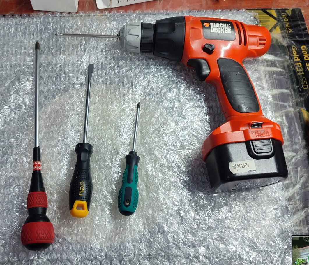 위의 작업대 테이블 밑에 수동 드라이버 대가리가 보이네요.