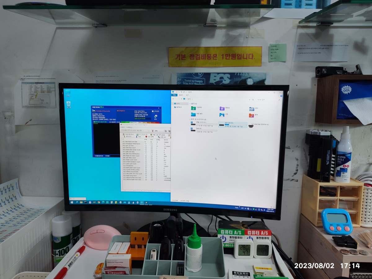 요즘 SSD 없이 하드디스크만 사용하기에는 너무 속도가 늦기 때문에 엄청 답답합니다. 그래서 삼성 SSD를 추가하고 사용하는 걸 권장드렸습니다. 다른 본체에 SSD 남는 게 있는지 찾아보고 연락주시기로 했는데, 남는 SSD가 없으셔서, 그냥 신품으로 추가했습니다.