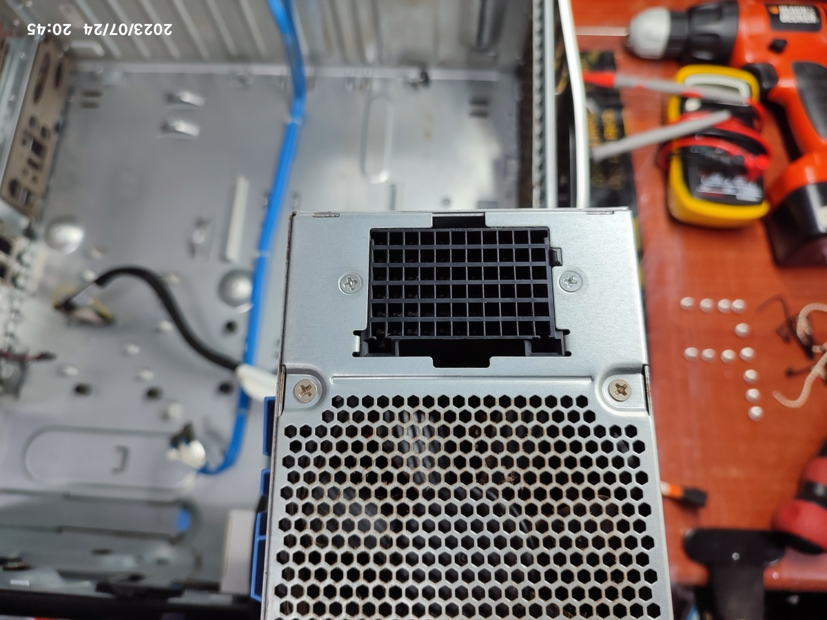 보통 DELL 컴퓨터는 조립 컴퓨터에서 자주 사용하지 않는 다른 규격의 파워를 주로 사용하는데, 아래는 일반 ATX 파워랑 동일한 규격의 파워가 들어 있네요. 파워에 특별한 기능을 추가했을진 모르겠습니다만, 제 테스트용 파워서플라이를 연결하니 정상적으로 부팅되고 있습니다. 마지막에 윈도우가 제대로 종료되지 않은 상태라서, 복구화면이 뜨기는 했지만, 표준 모드로 진입하니 바탕화면까지 진입됐습니다.