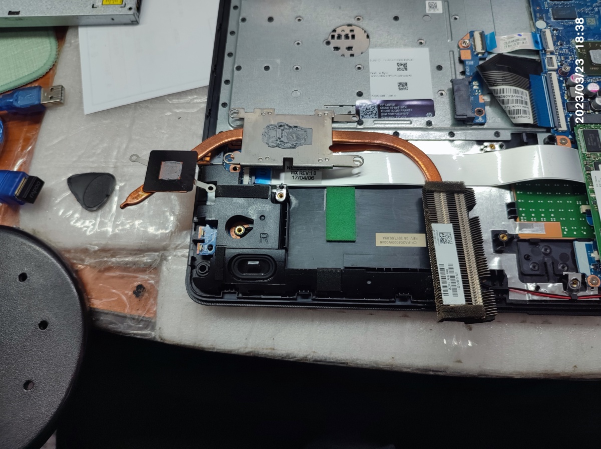 노트북 분해할 일이 그렇게 많지 않기때문에, 분해했을 때, 서멀컴파운드 재도포 작업도 진행합니다. CPU와 그래픽 칩셋 위의 서멀을 닦아내고 새로 발랐습니다.