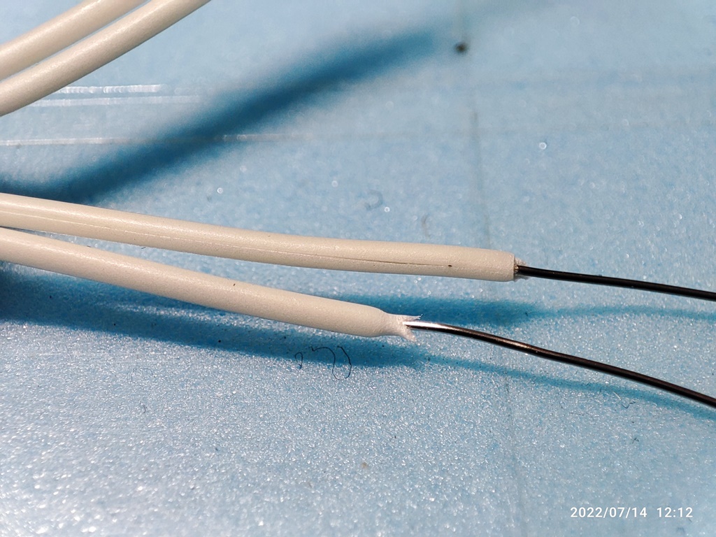 아래는 니퍼로 얇은 금속을 집어본 사진인 거 같네요. 금속이 무르기 때문에, 케이블이 꺾이거나 찍히면, 내부는 이렇게 얇아지는 구간(케이블 변형)이 생길 수 있습니다. 얇아진 구간은 정상적인 굵기보단 좁아져서 저항이 높아질 수 있는 구간이 생길 수 있습니다.
